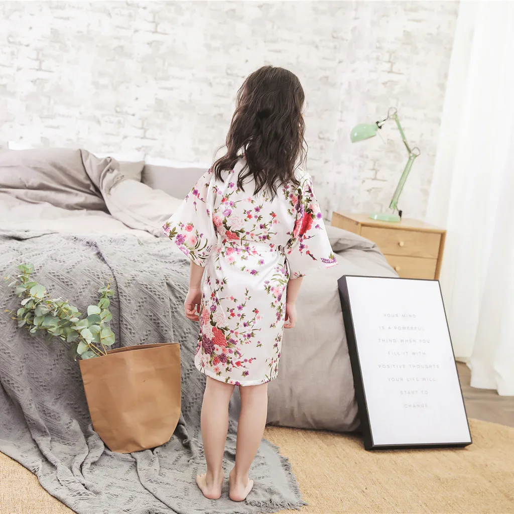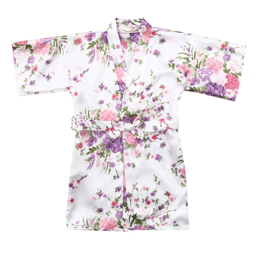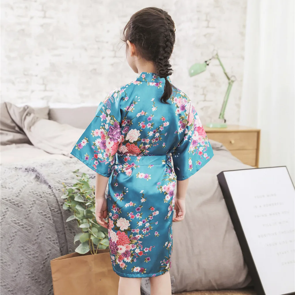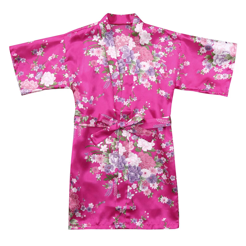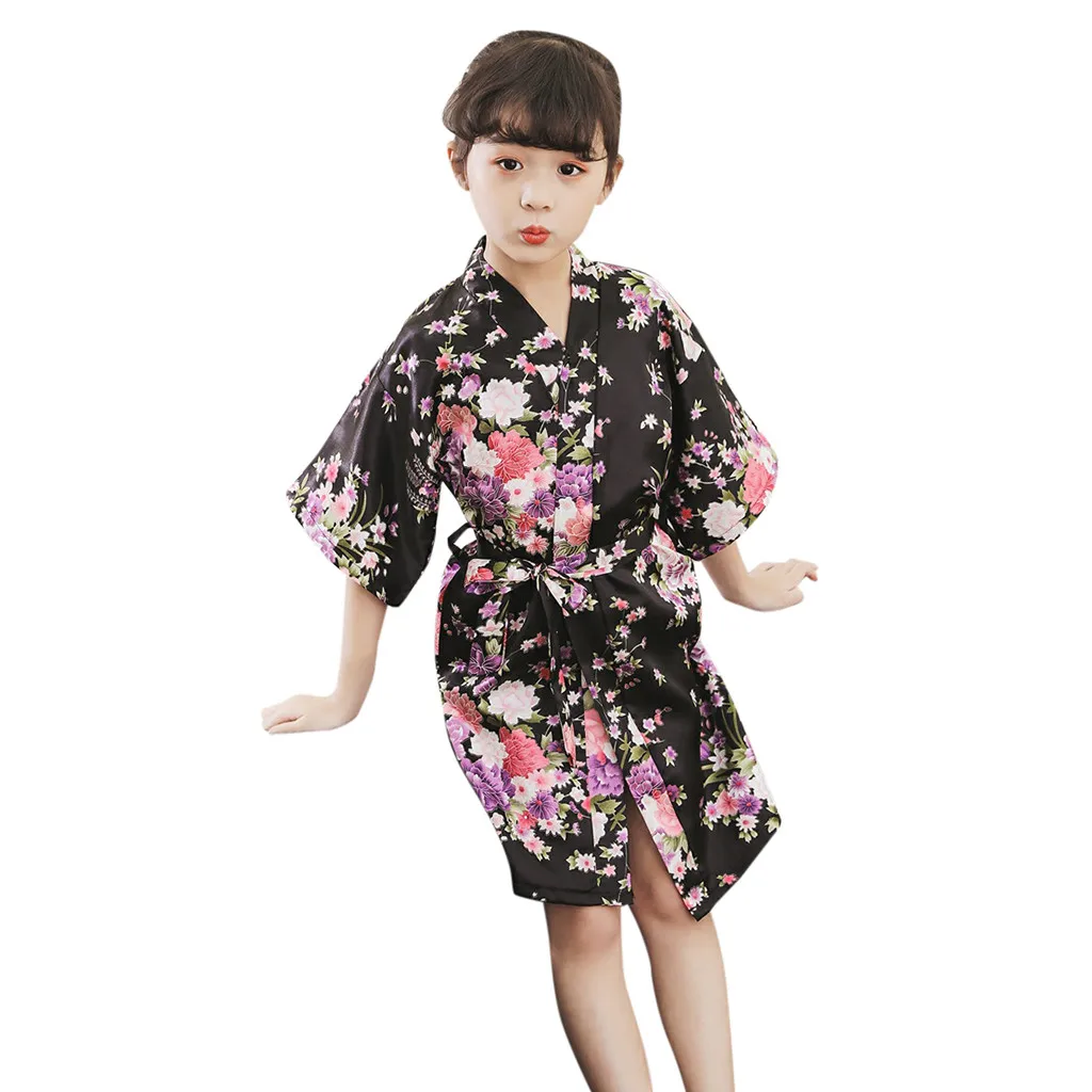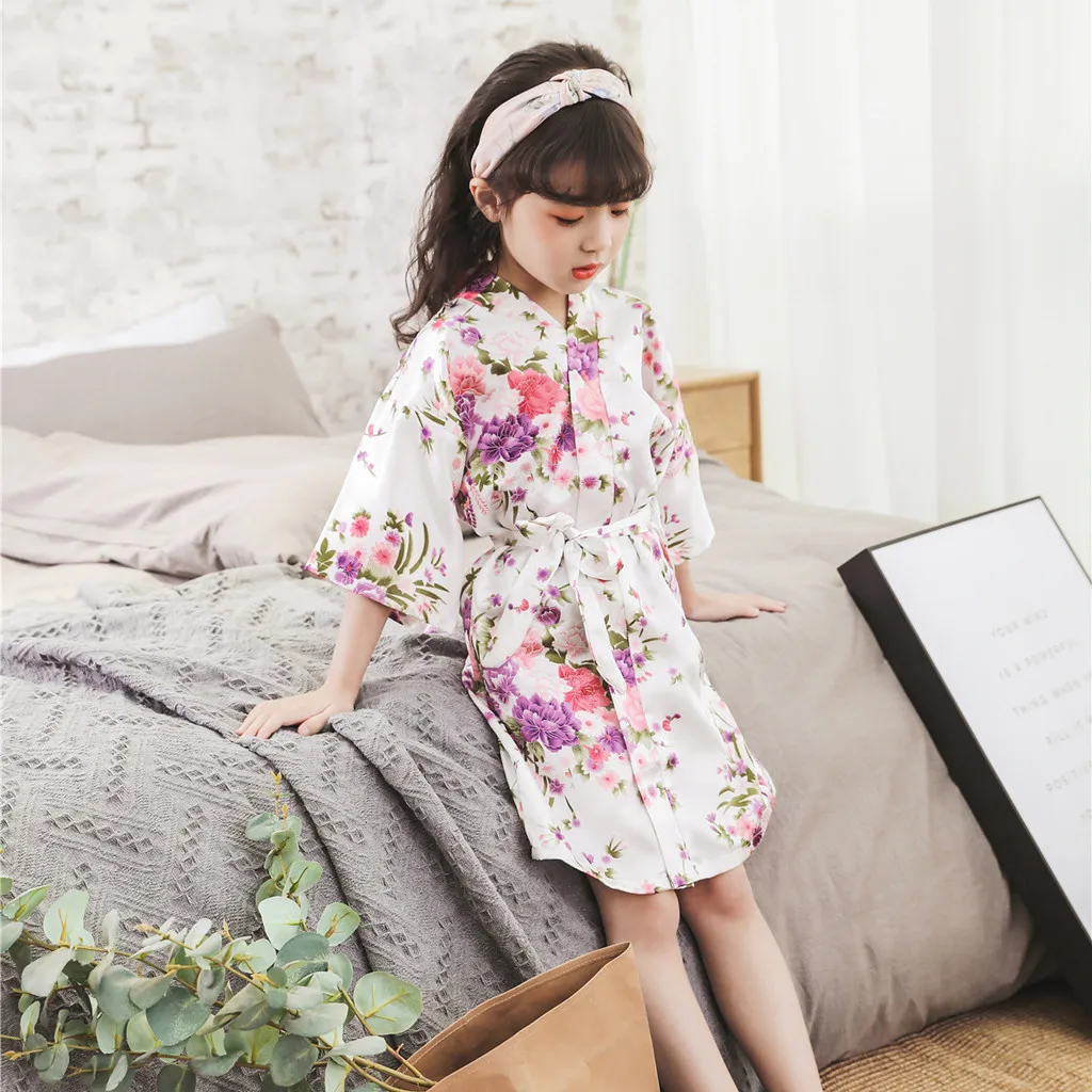 Детское шелковое атласное кимоно с цветочным рисунком для маленьких девочек банный халат, одежда для сна