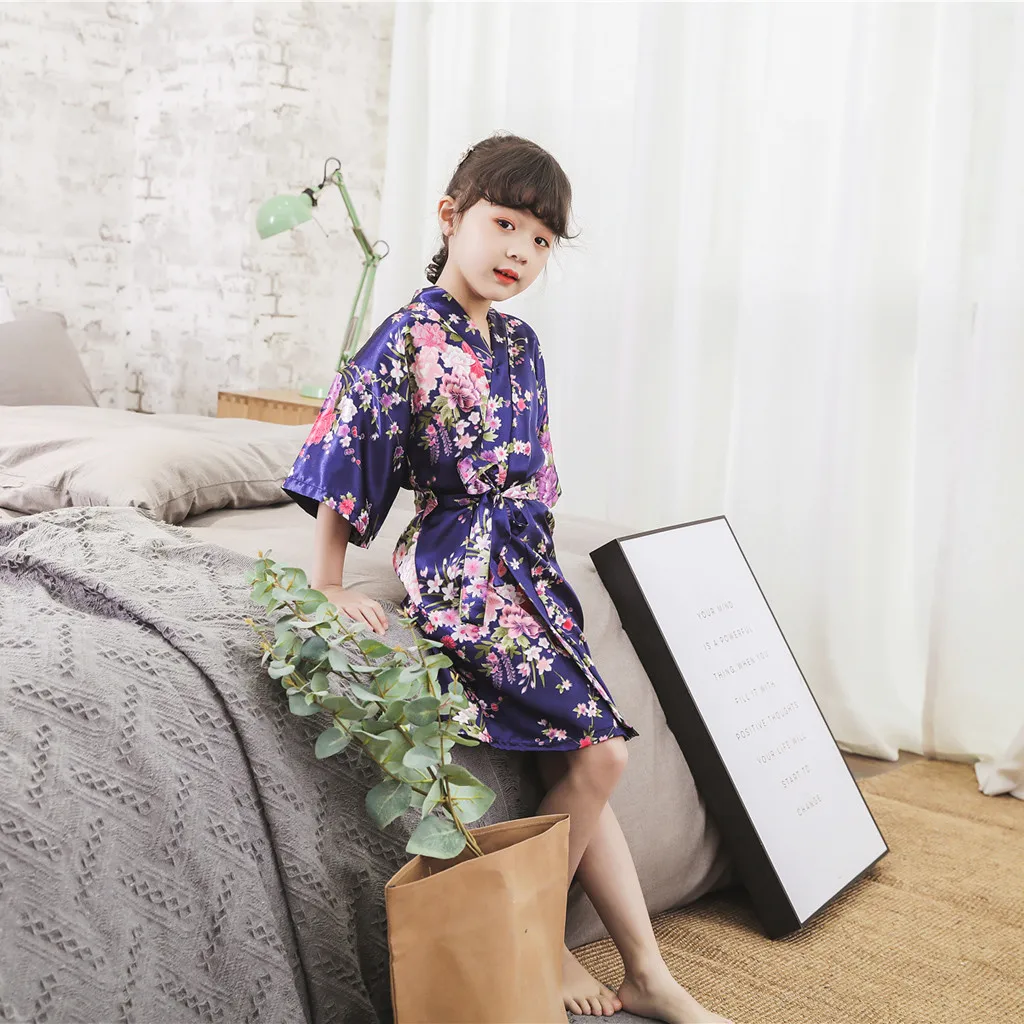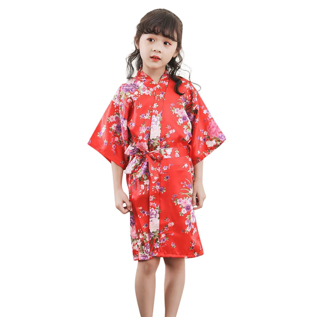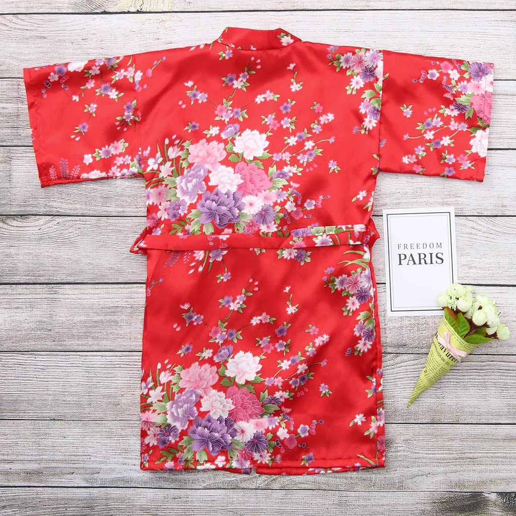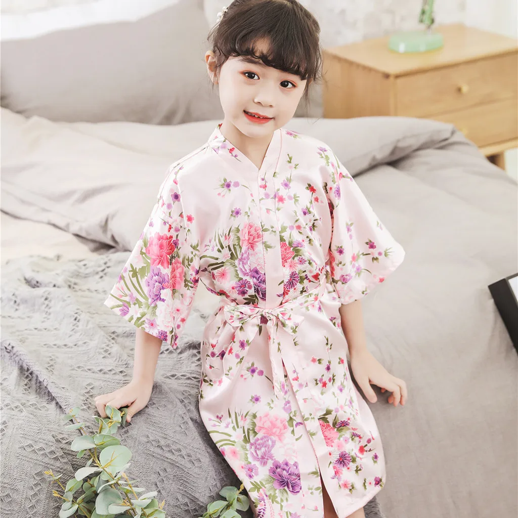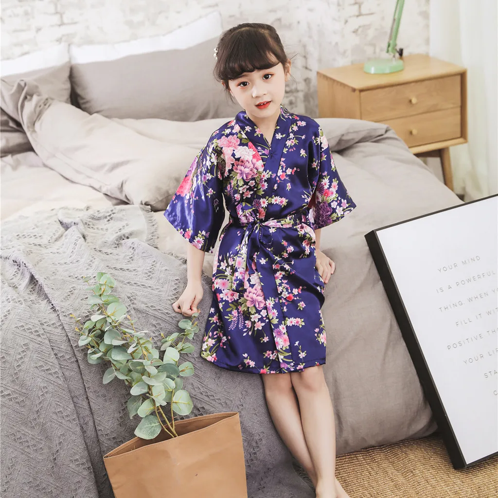 Детское шелковое атласное кимоно с цветочным рисунком для маленьких девочек банный халат, одежда для сна