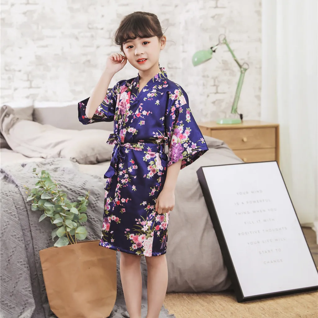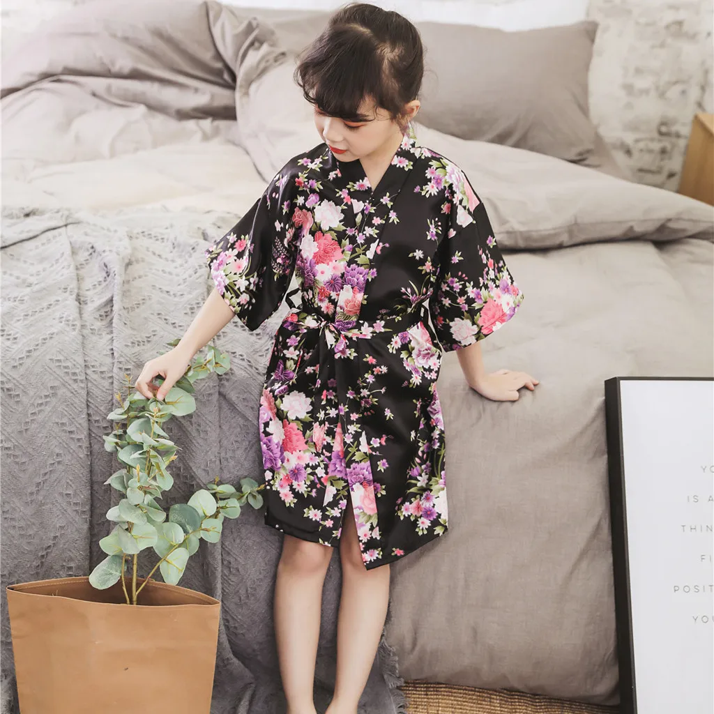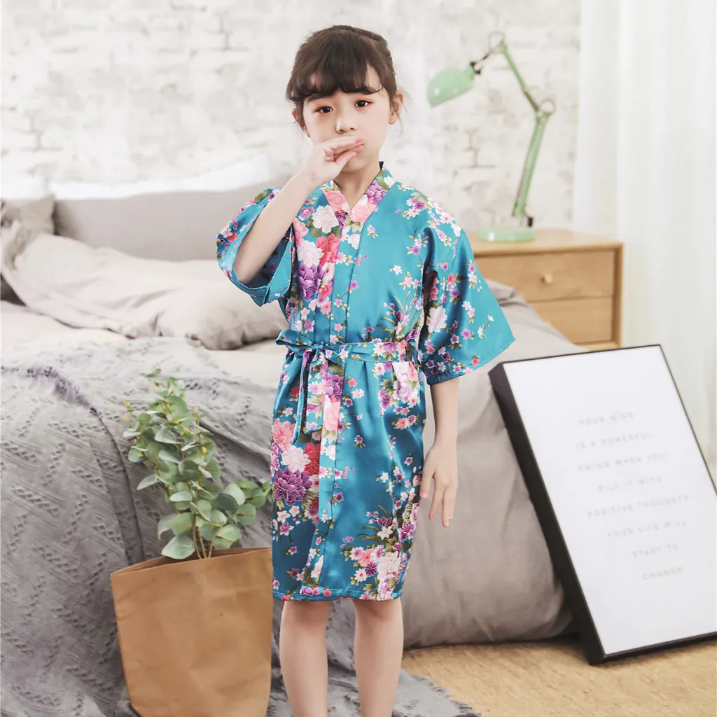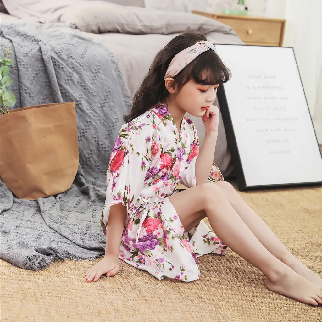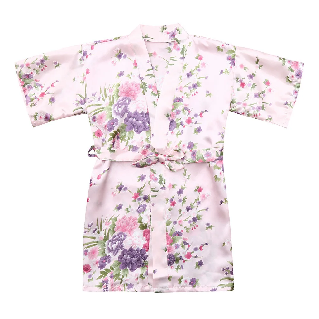 Детское шелковое атласное кимоно с цветочным рисунком для маленьких девочек банный халат, одежда для сна