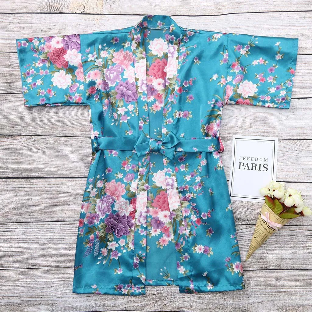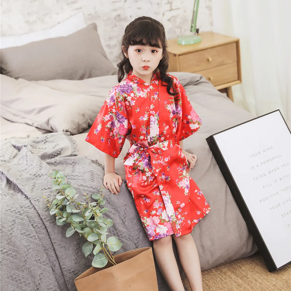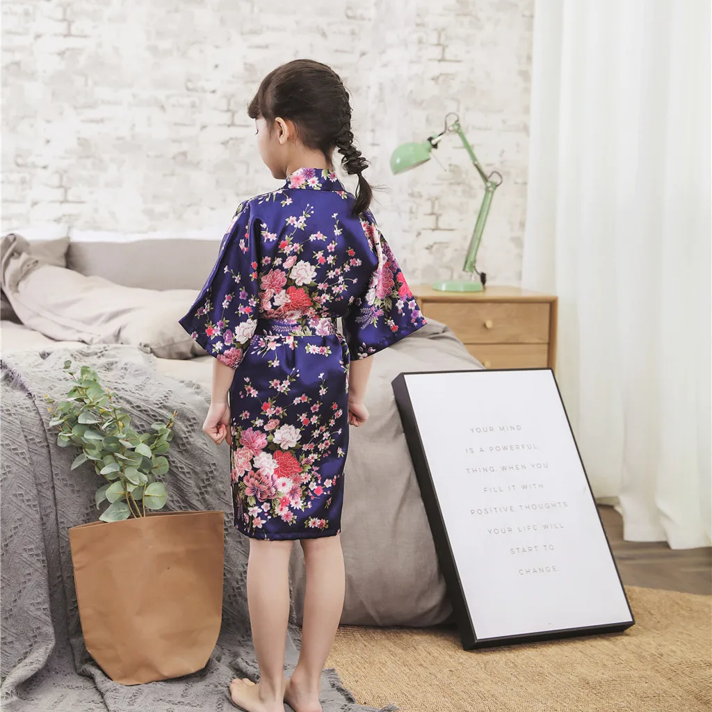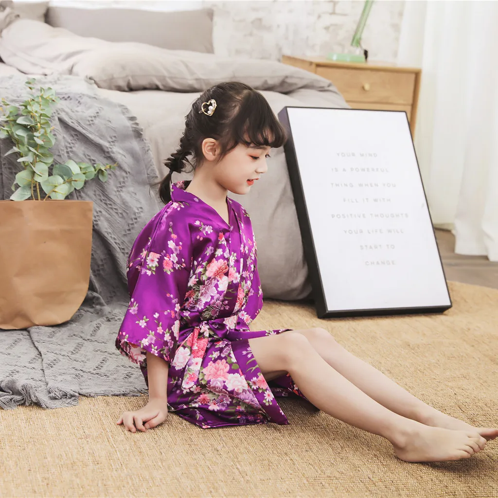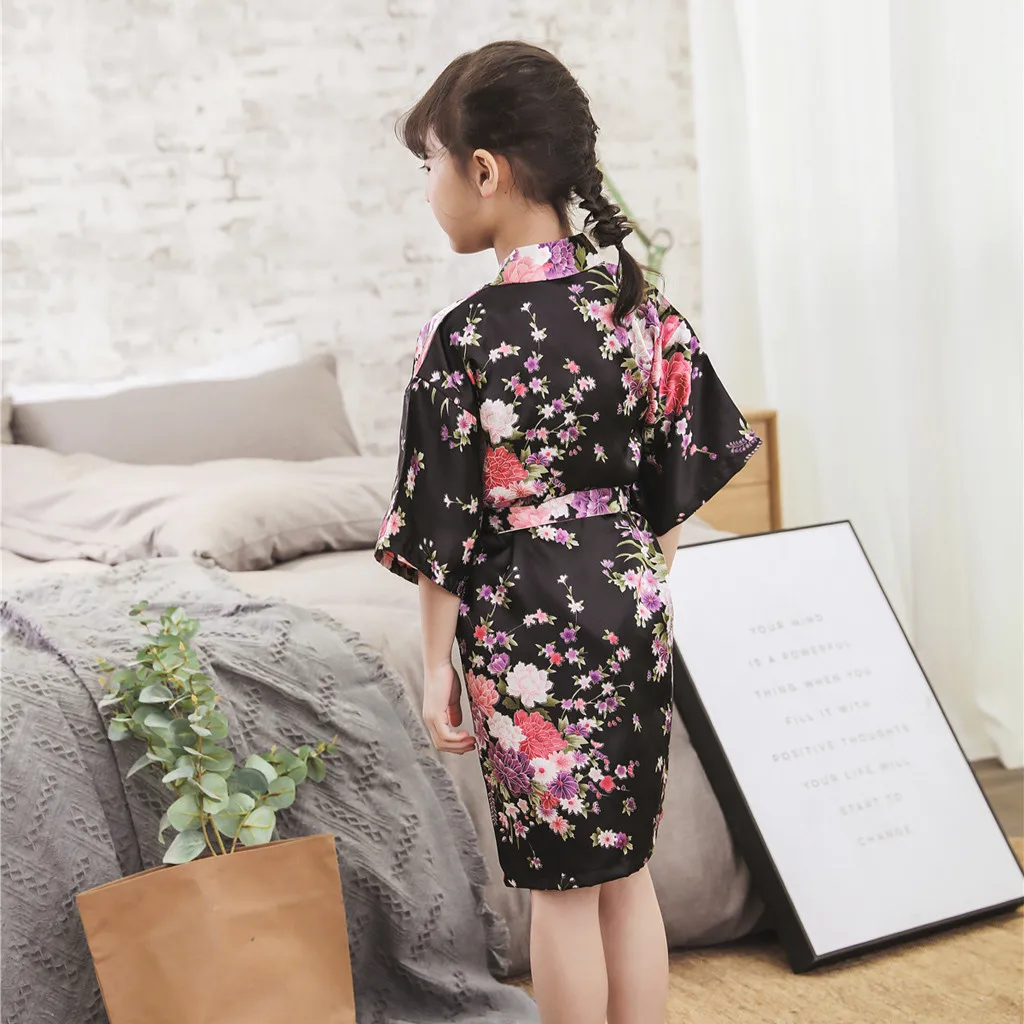 Детское шелковое атласное кимоно с цветочным рисунком для маленьких девочек банный халат, одежда для сна