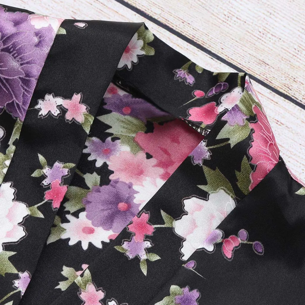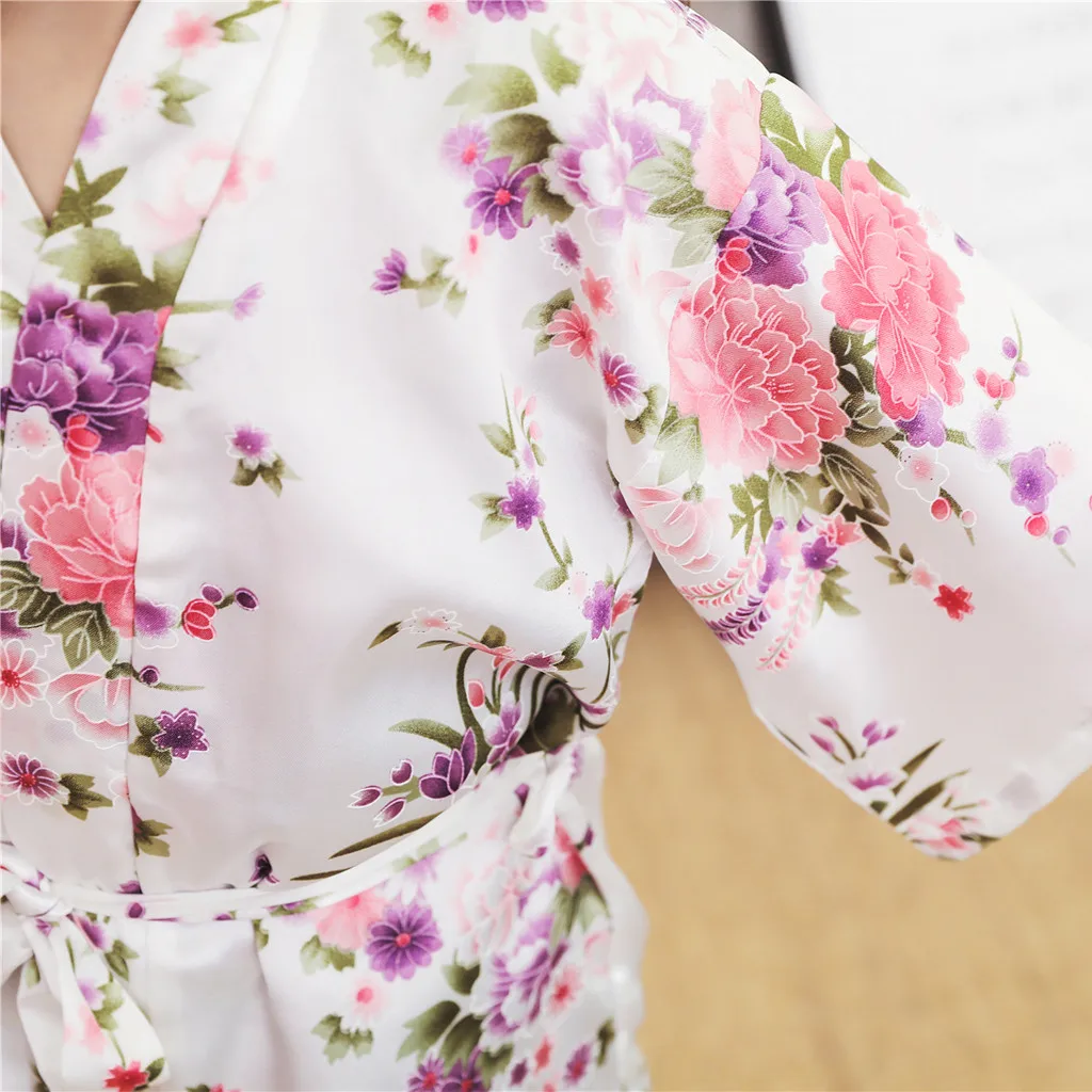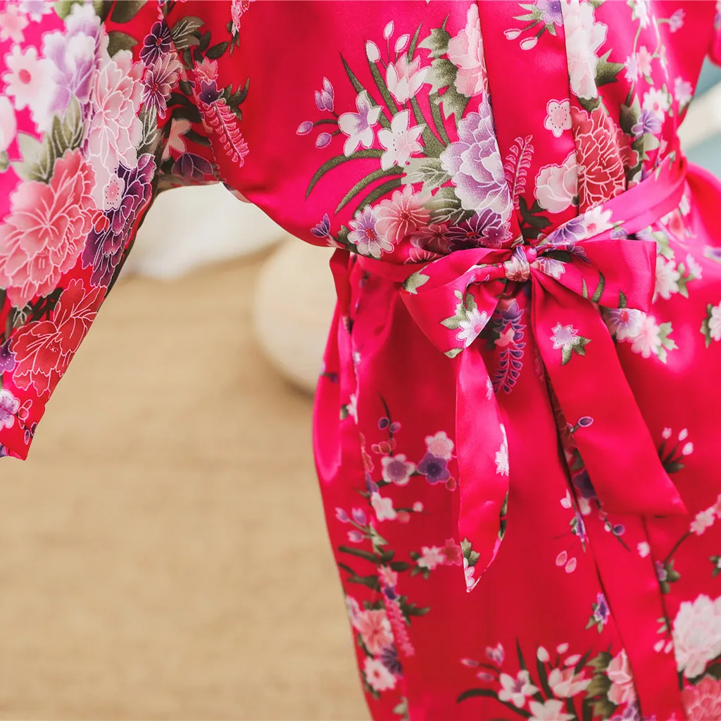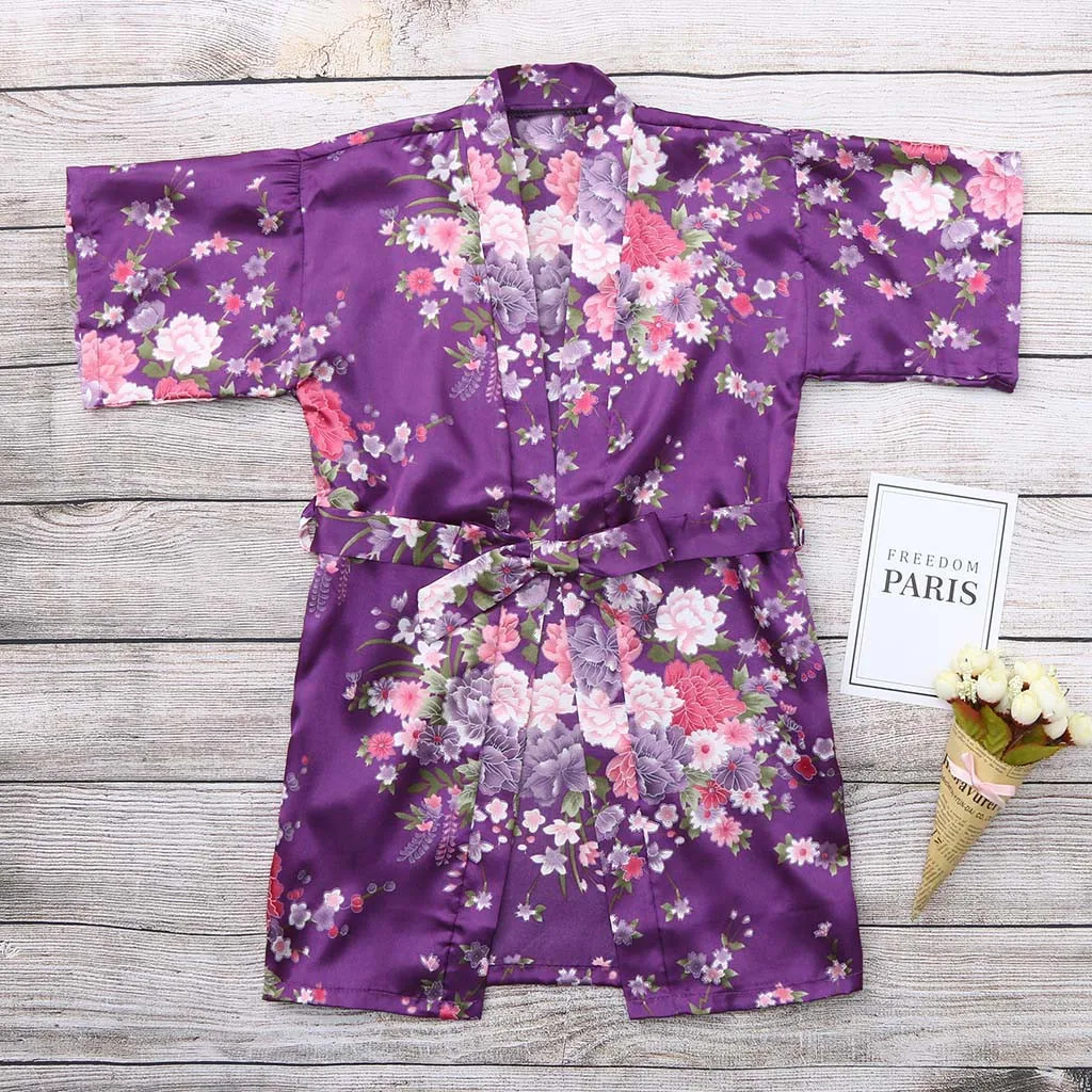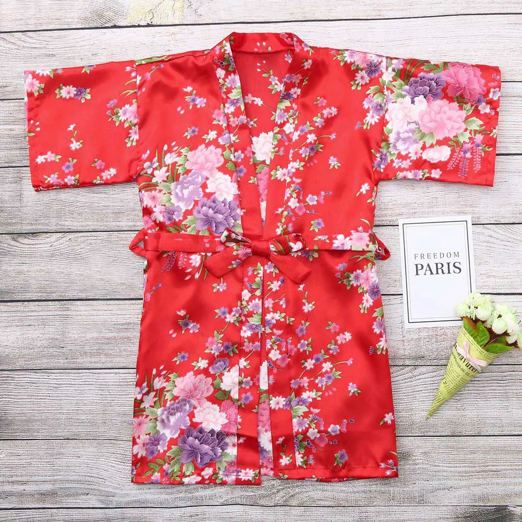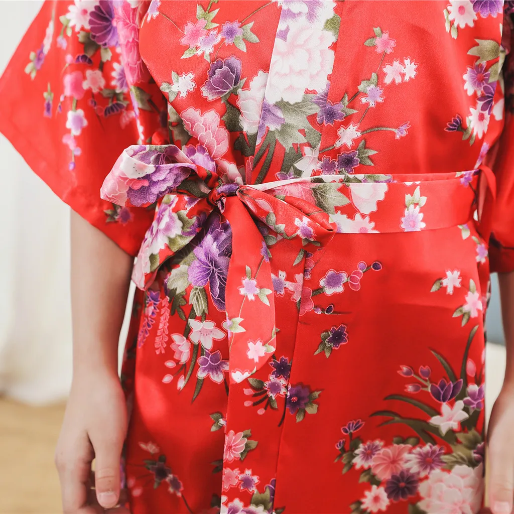 Детское шелковое атласное кимоно с цветочным рисунком для маленьких девочек банный халат, одежда для сна
