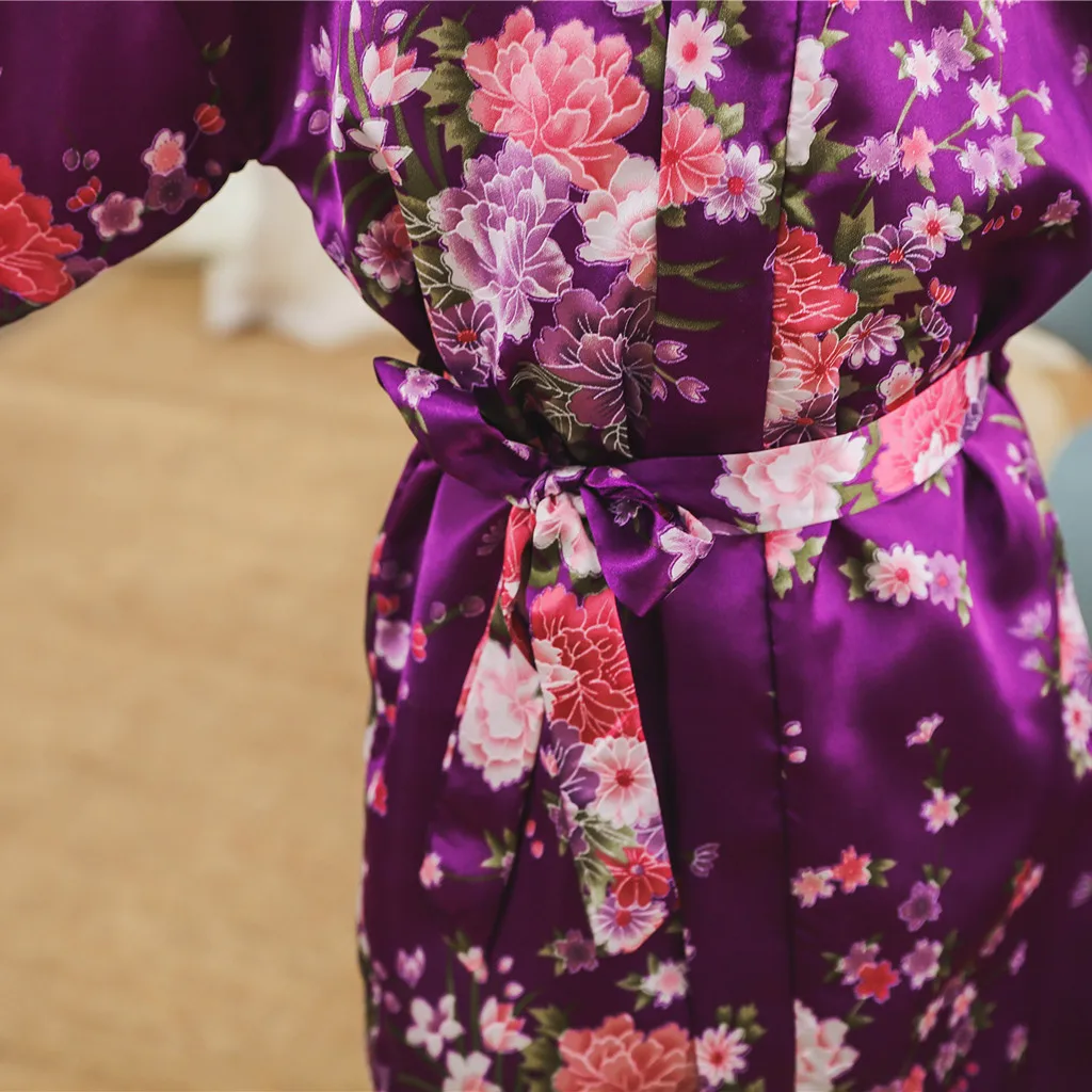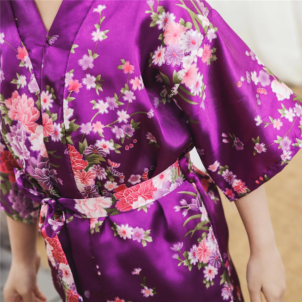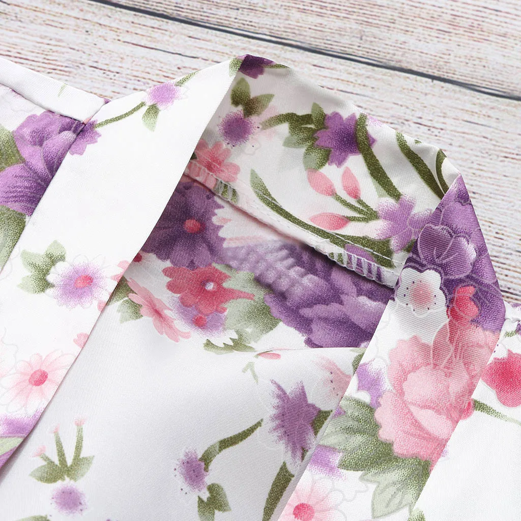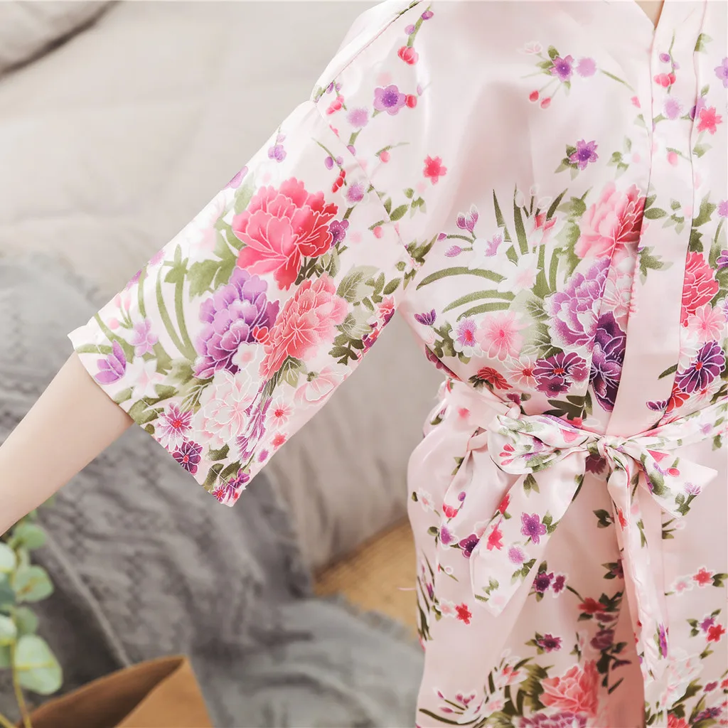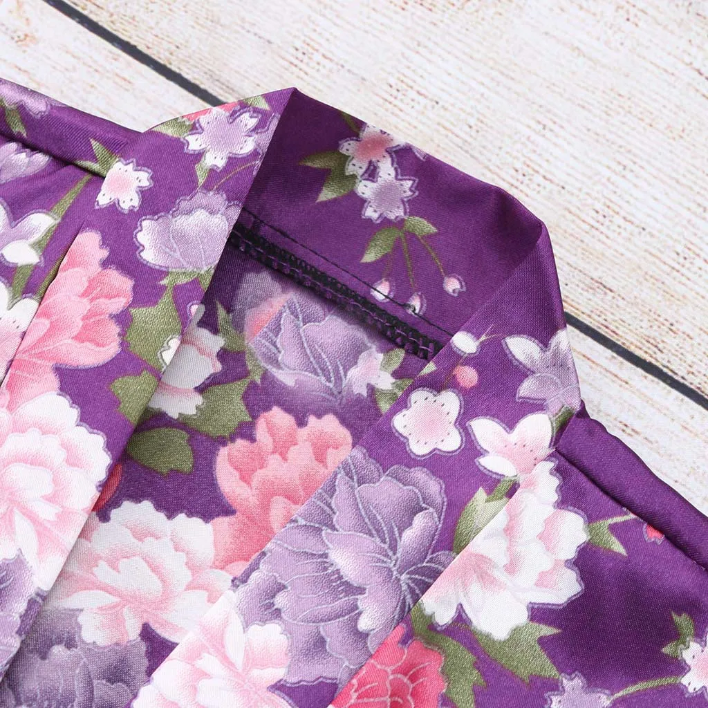 Детское шелковое атласное кимоно с цветочным рисунком для маленьких девочек банный халат, одежда для сна