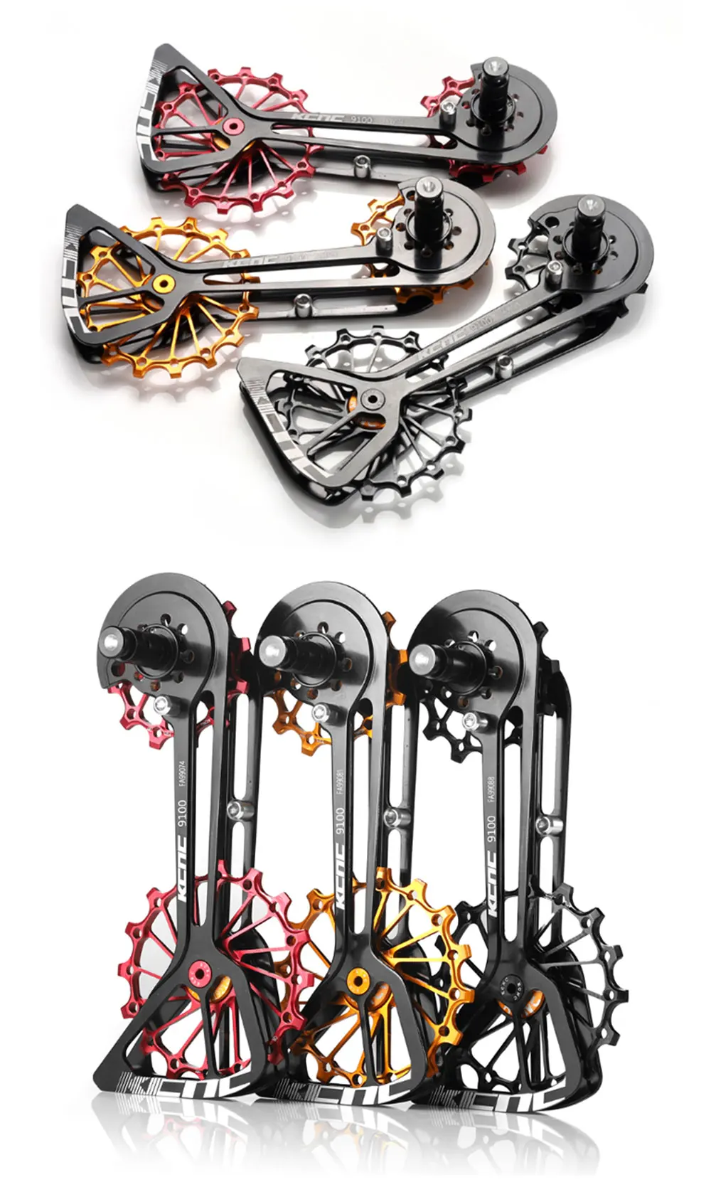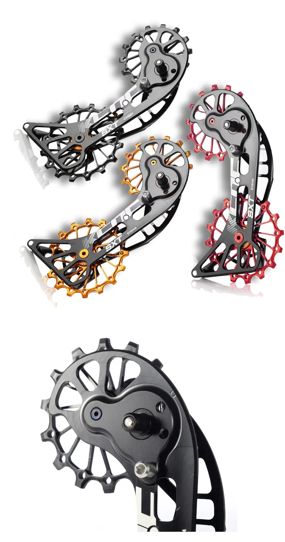Материал клетки: Алюминиевый ультра-светильник AL707 Верхний шкив: 14T SUS герметичный подшипник Нижний шкив: 16T SUS герметичный подшипник Вес: 50 г Для ShImano M9000 / M9050 / M8000 / M8050 / M7000 11s заднего использования Система состоит из топовых колесиков из сплава 14t & Bottom 16t, оснащенных подшипниками с низким коэффициентом трения и легкой клеткой из сплава 7075.
