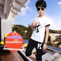 Одежда для маленьких мальчиков летняя спортивная футболка с короткими рукавами и буквенным принтом + брюки средней длины модная качественная детская одежда