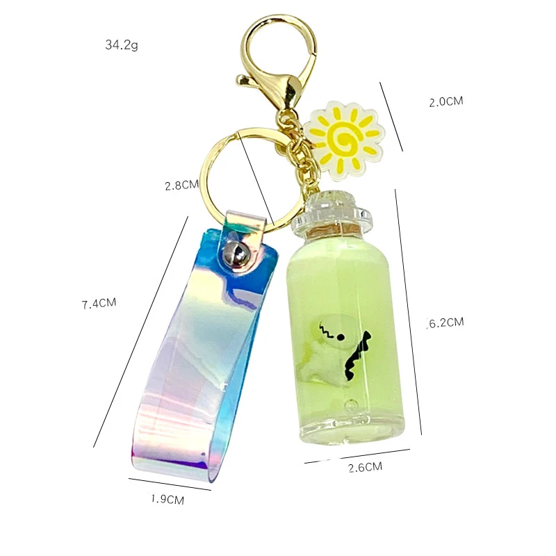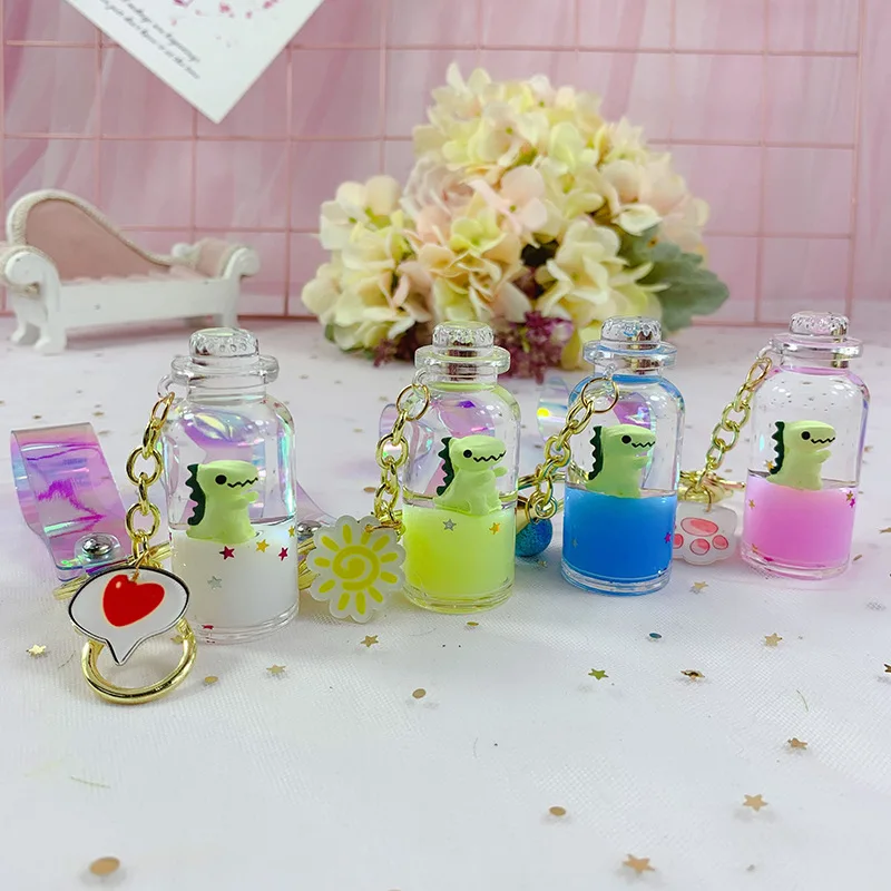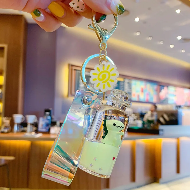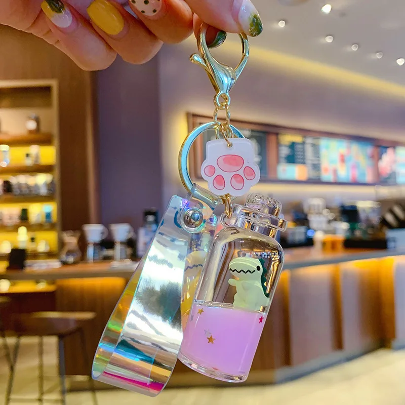 Модная новинка брелок с динозавром из мультфильма молочный чай чашка жидкий зыбучий песок с блестками брелок для мужчин и женщин сумка Автомобильный держатель для ключей с подвеской