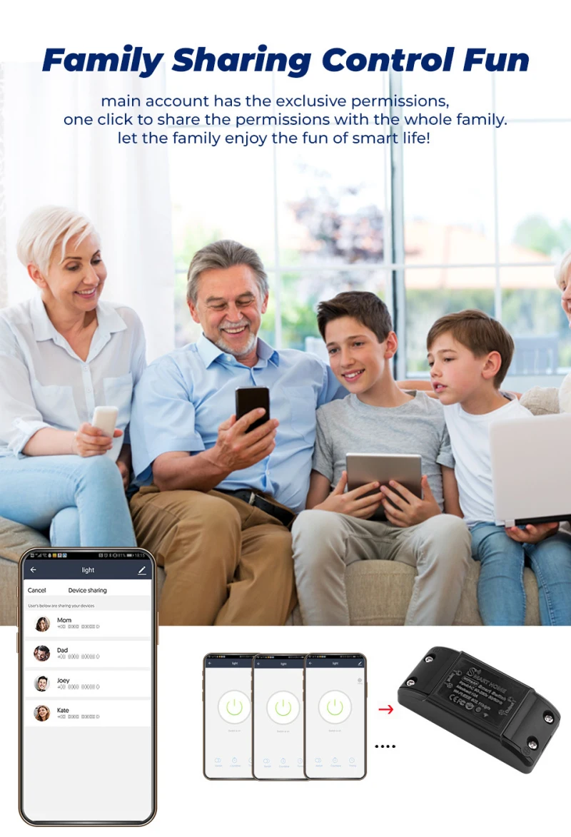 【Поддержка голосового управления динамиком】Коммутатор совместим с Alexa и Google Home Assistant, что позволяет использовать Голосовое управление smart switch для включения/выключения.