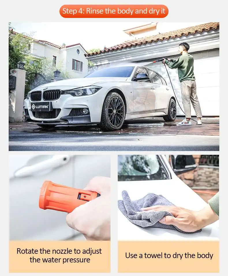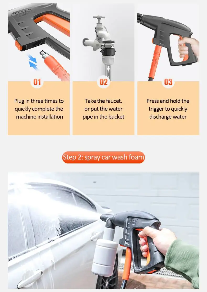 Благодаря наличию воздуха в водовпускной трубе и внутренних компонентов машины, с целью уменьшения времени холостого хода машины и продления срока службы двигателя, операция такова: после установки впускной и выпускной трубы/ручки ружья в сборе, Автоматическое вытяжное устройство на внутренней крышке насоса машины будет активировано. Небольшое количество воды может протечь со дна машины, что нормально. Машина автоматически останавливается, то есть процесс выхлопной трубы завершается, обычно 5-10 секунд; Если подача воды недостаточна или впускная труба воды поднимается на поверхность, из-за попадания воздуха выпускной клапан снова начнет быстро выпускать воздух.