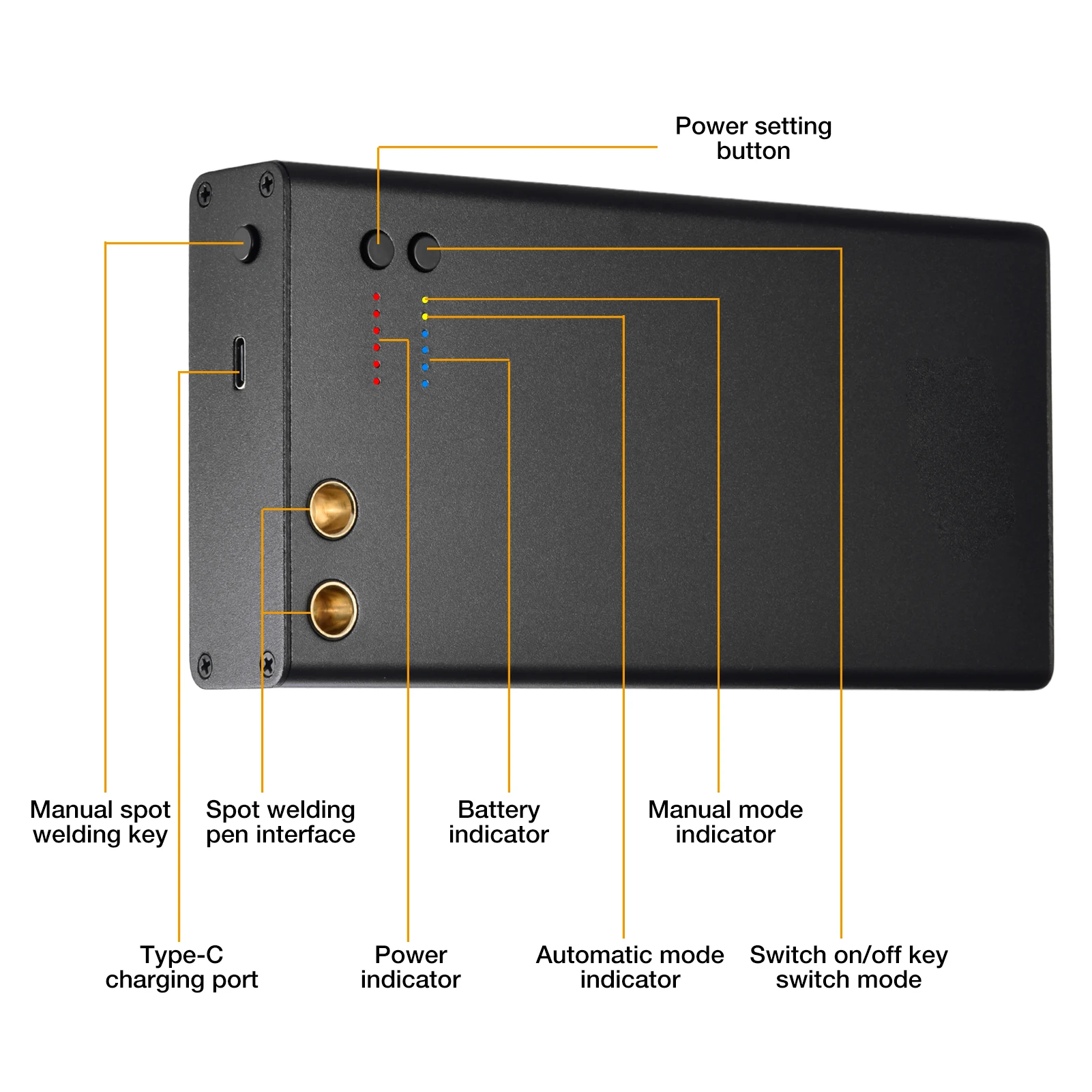 7. Интерфейс Type-C 2A вход, 6500 мАч точечный сварочный аппарат может быть полностью заряжен в течение 3 часов.