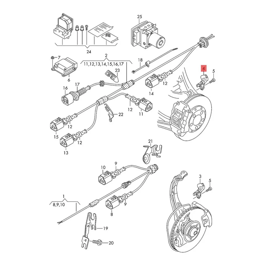 4 x новый высококачественный датчик скорости колеса ABS (4E0927803F)