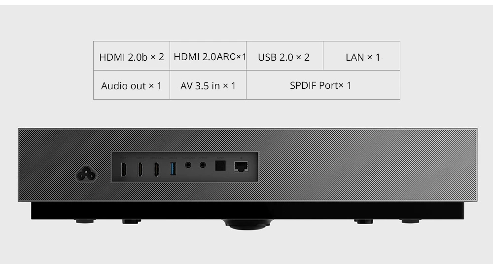 Интерфейс: HDMI-совместимый 2.0b × 3, USB 2,0 × 2, аудиовыход × 1, AV 3,5 in × 1, SPDIF × 1, LAN × 1