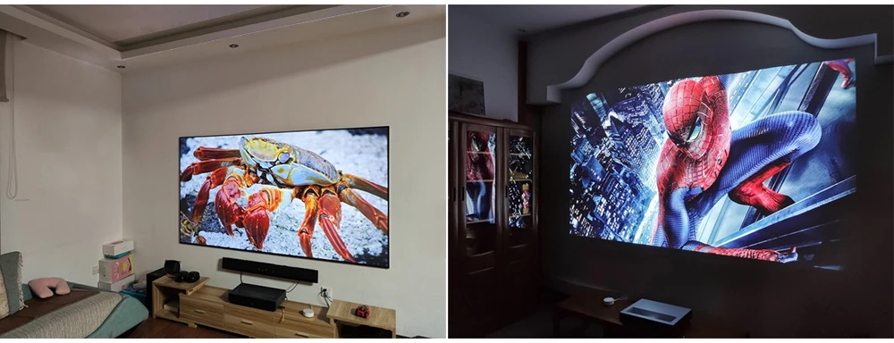Легко отбрасывается 40 - 200 дюйма, рекомендуется лучший размер экрана 80 - 150 дюйма.