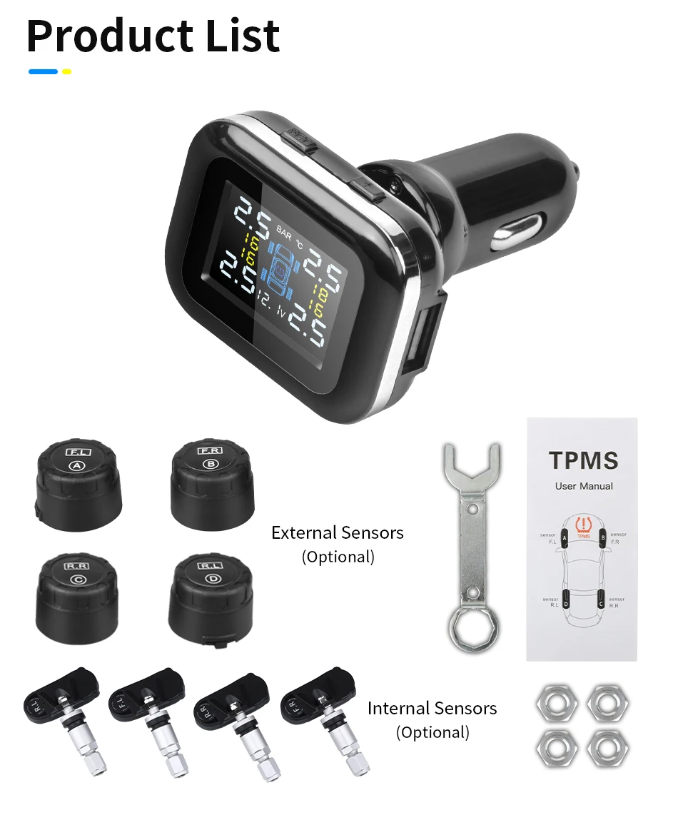 Jansite CIgarette Зажигалка Цифровой TPMS давление в шинах автомобиля