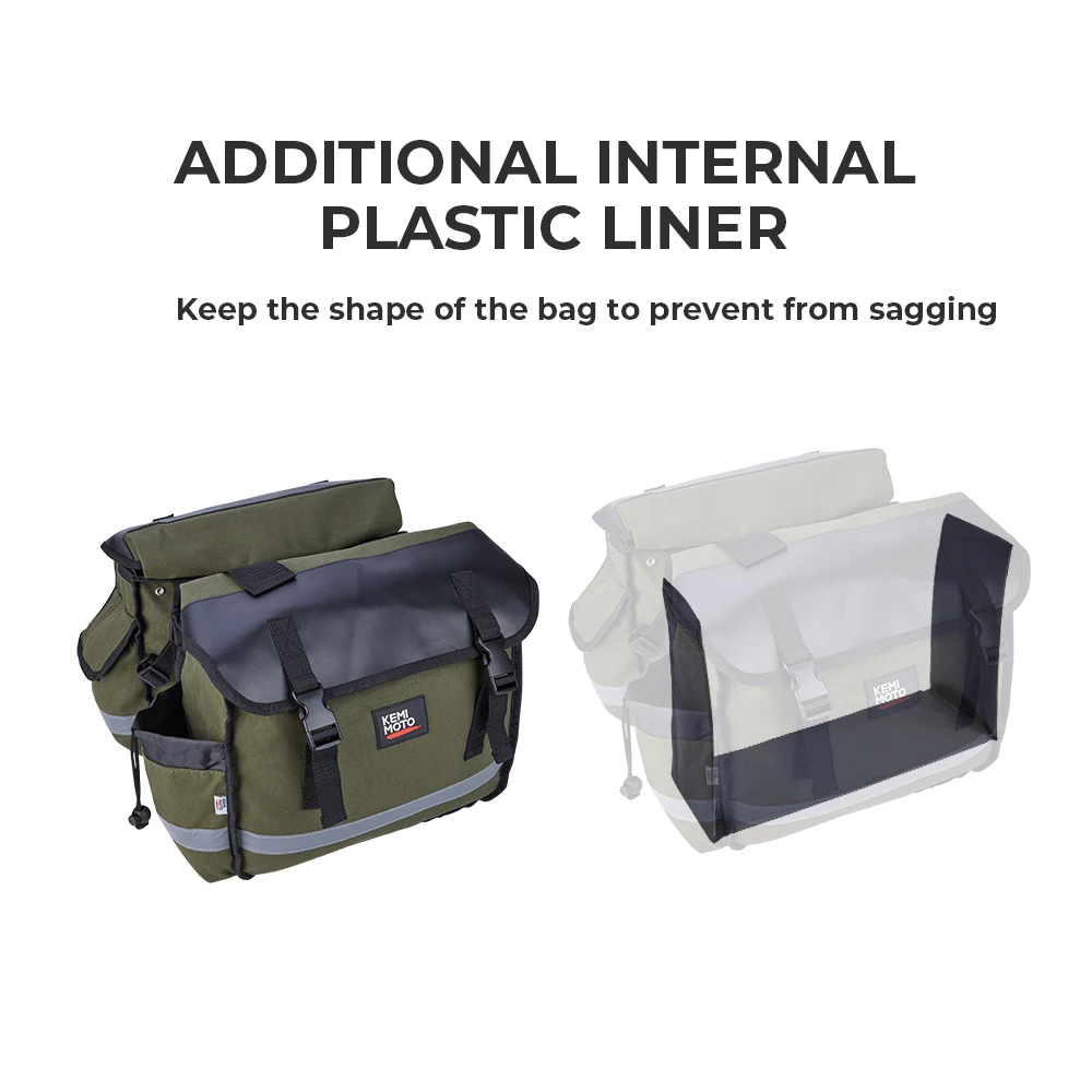 1. Reflective tape - increase visibility, make your trip safer and reduce traffic accidents. 2. Water Resistant - Saddlebag raincoats are available to avoid water. 3. Keep the shape - there are hard liners to keep the shape of the bags. Thus, it will not sag even when emptying the bag. 4. Medium Sized Saddle Bag - It is big enough to store regular things, such as gloves, wallet, earphones, power bank, raincoat, jacket. 5. Multi-pockets - There is a cup holder and a side pocket on the outside of the satchel, convenient to take and store your water bottle and a small item. There is also an internal zippered mesh pocket, more secure for storing keys, wallet and other small items.
