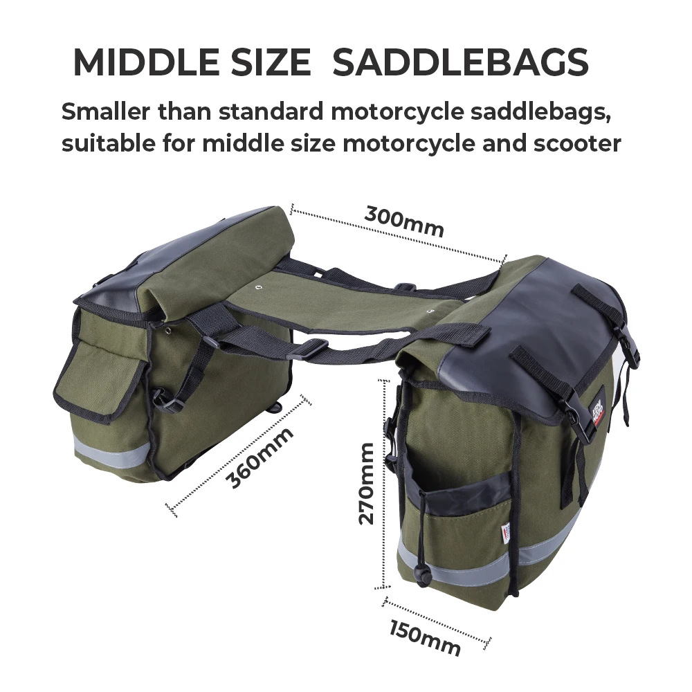 Item: 2020 New Upgrade Motorcycle Saddle Bags Material: canvas + leather Size: 360mm * 250mm * 150mm (each side)