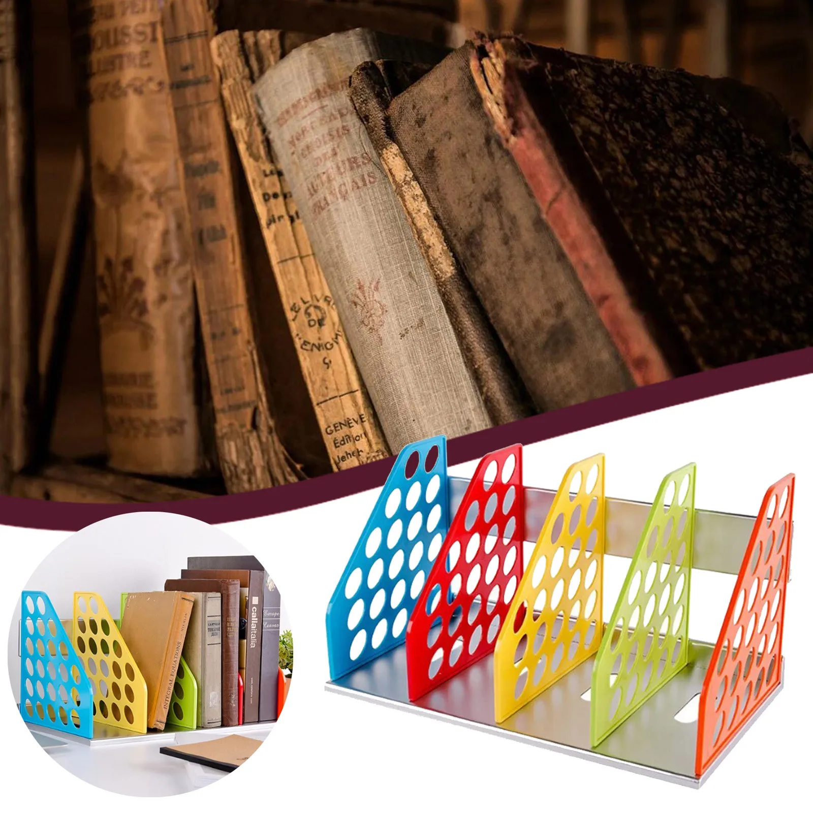 Органайзер для журналов и папок 4 секции изогнутый дизайн стойкий цветной