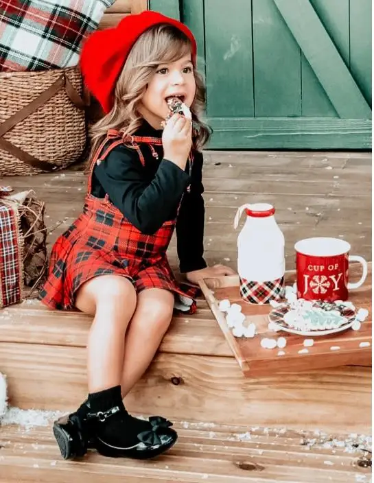 Модная клетчатая юбка для родителей и Детские подтяжки