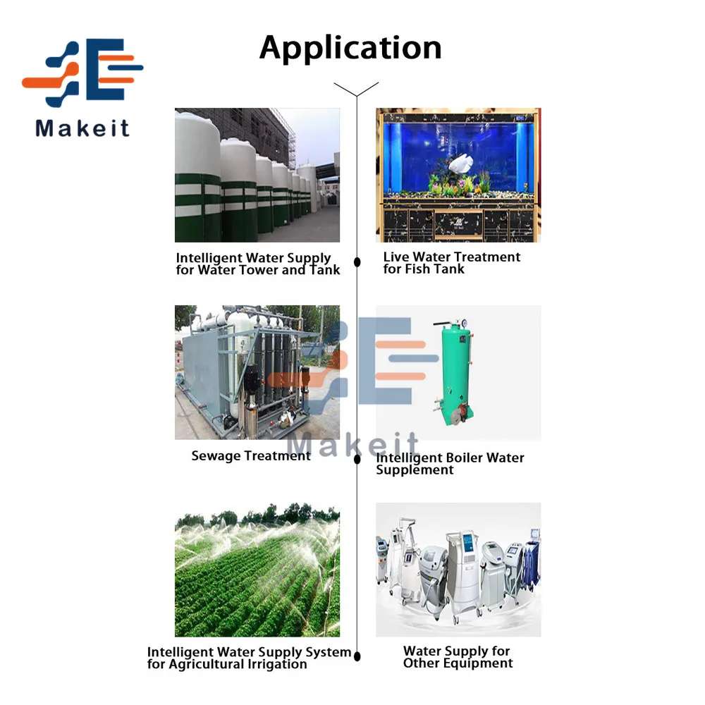 Применение: подходит для управления radiotube, водяными насосами и т. Д., так как он может обеспечить автоматический контроль высокого и низкого уровня воды, а также сохранить стабильный уровень.