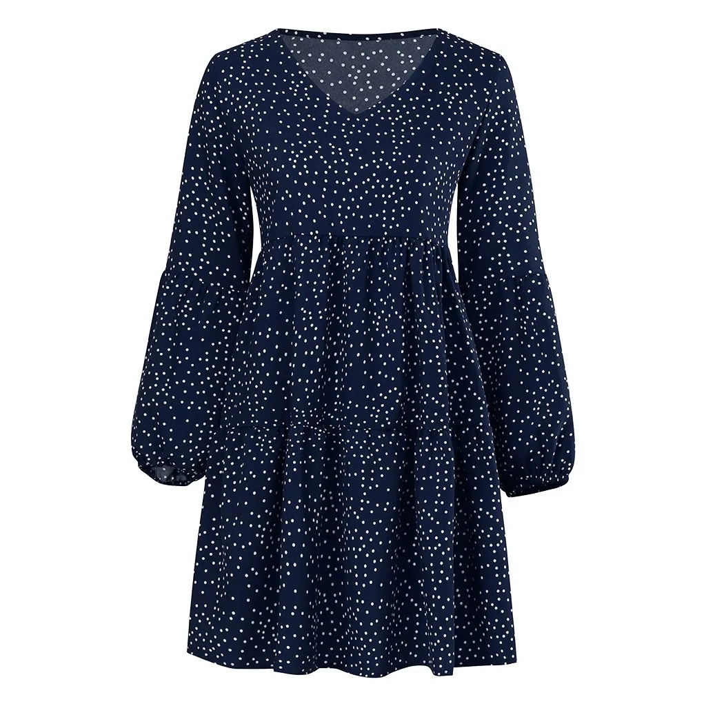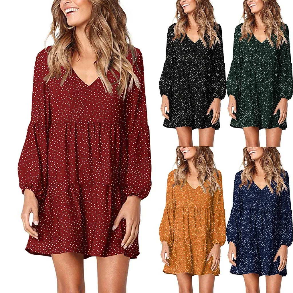 Женское повседневное мини-платье в горошек с v-образным вырезом, свободное платье с коротким рукавом и оборками