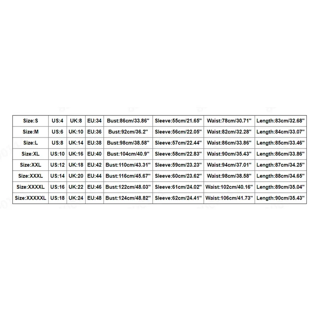 Размеры США Великобритания ЕС Бюст Рукав Талия Длина S 4. 8 34 86 см/33,86'' 55 см/21,65'' 78 см/30,71'' 83 см/32,68'' М 6 10 36 92 см/36,2" 56 см/22,05'' 82 см/32,28'' 84 см/33,07'' L 8 14 38 98 см/38,58'' 57 см/22,44'' 86 см/33,86'' 85 см/33,46'' XL 10 16 40 104 см/40,9" 58 см/22,83'' 90 см/35,43'' 86 см/33,86'' XXL 12 18 42 110 см/43,31'' 59 см/23,23'' 94 см/37,01'' 87 см/34,25'' XХХL 14 20 44 116 см/45,67'' 60 см/23,62'' 98 см/38,58'' 88 см/34,65'' XXXXL 16 22 46 122 см/48,03'' 61 см/24,02'' 102 см/40,16'' 89 см/35,04'' XXXXXL 18 24 48 124 см/48,82'' 62 см/24,41'' 106 см/41,73'' 90 см/35,43''