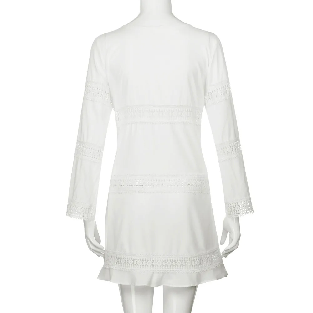Женская летняя тройка Свободное кружевное пляжное Короткое мини-платье в стиле бохо с рукавами «четверть»
