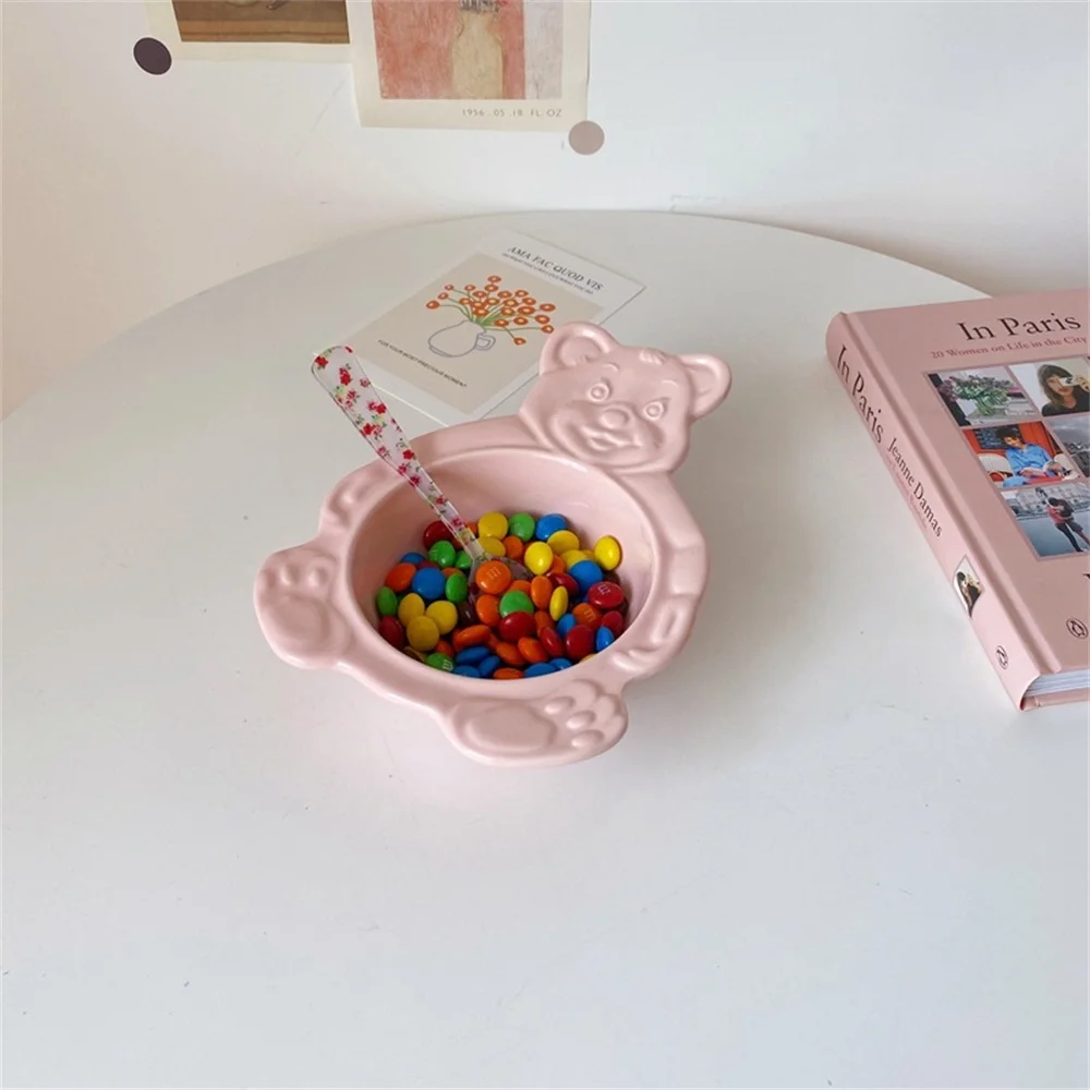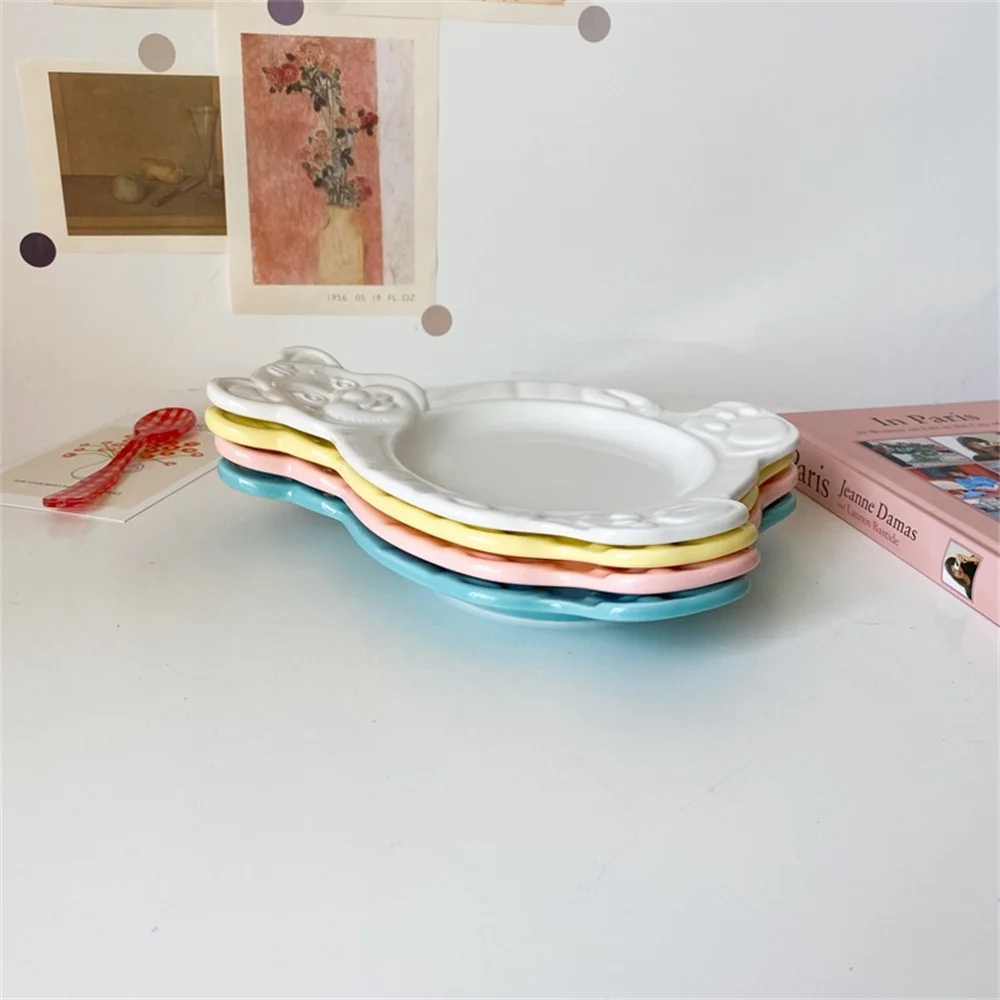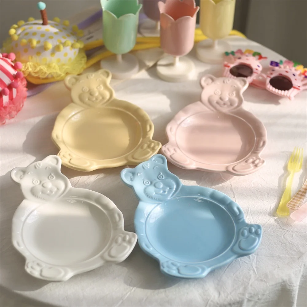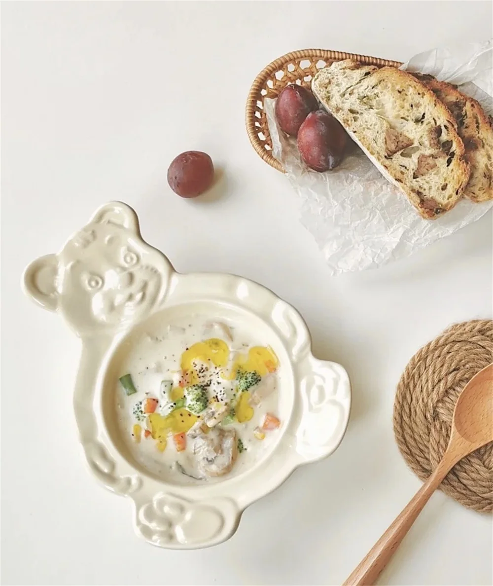 Миска с мишкой, керамическая тарелка с мишкой из мультфильма, десертные чашки-тарелки, милые обеденные блюда, десерт в Корейском стиле, плоская миска для супа, поднос для завтрака, салата