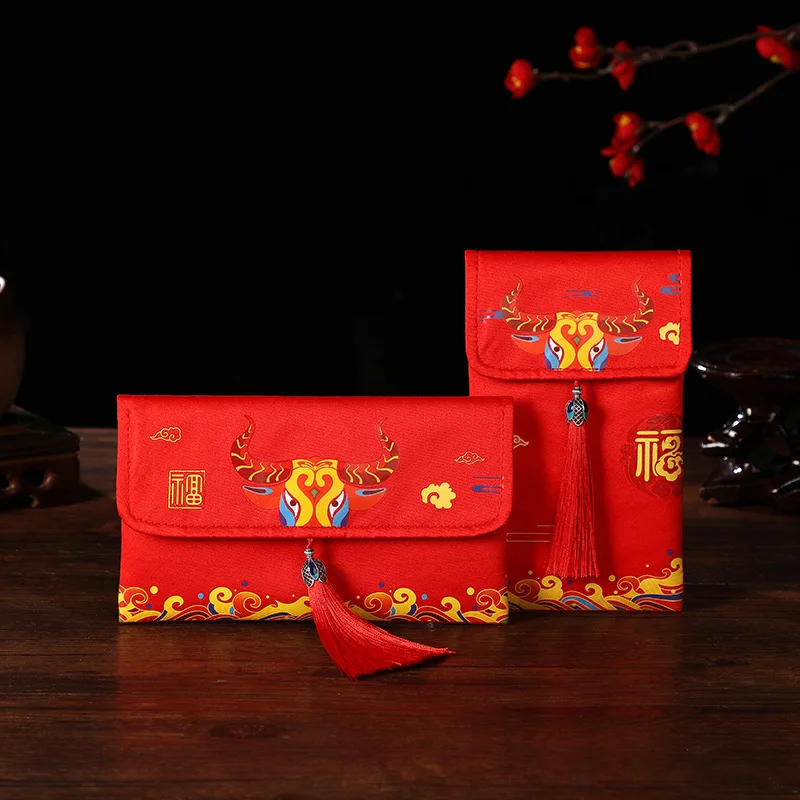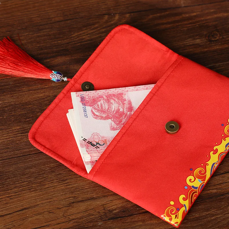 2021 год Свадьба День рождения ткань конверт сумка для хранения Новый год ткань красный конверт с кисточкой Happ