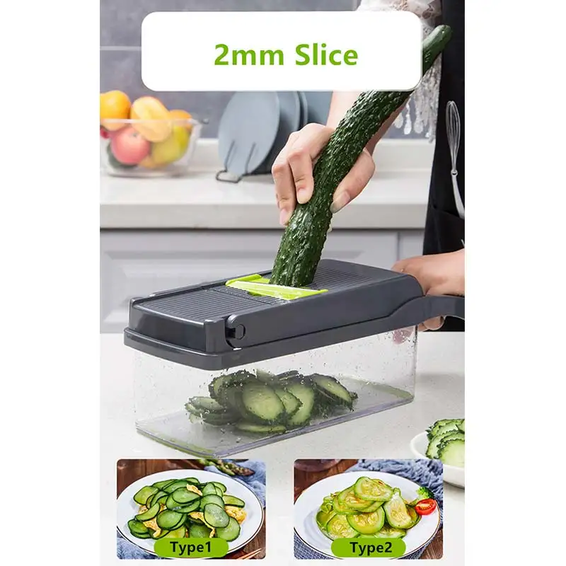 1. Этот ручной слайсер изготовлен из пищевой нержавеющей стали и BPA-Free ABS пластик предлагает. Он предлагает все функциональные возможности нескольких приборов со сменными нержавеющими лезвиями. Эти лезвия можно разрезать через все виды овощей, терка сыра, нарезка картофеля и резки фруктов, даже можно создать пастообразные овощи или пюре.
