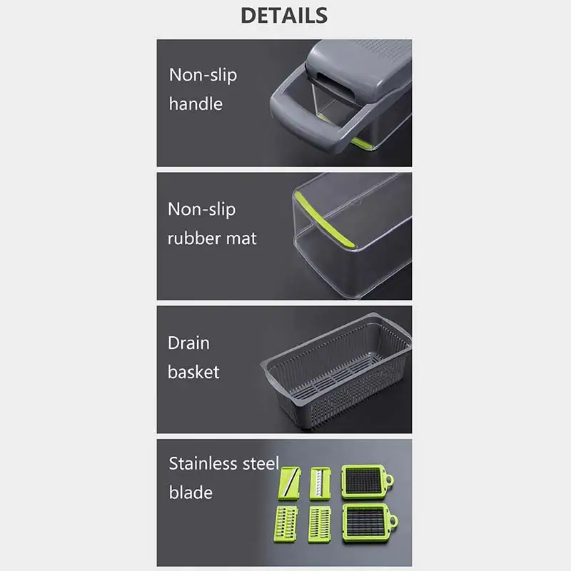 3. Экономьте время и деньги: С помощью этого кухонного набора для резки вы можете сэкономить 70% времени, попрощайтесь с водяными глазами, когда нарезаете лук; И поможет вам готовить еду более элегантно.