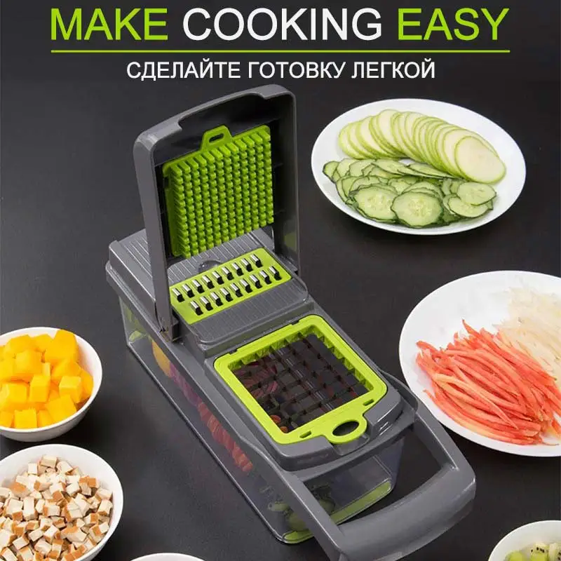1. Этот ручной слайсер изготовлен из пищевой нержавеющей стали и BPA-Free ABS пластик предлагает. Он предлагает все функциональные возможности нескольких приборов со сменными нержавеющими лезвиями. Эти лезвия можно разрезать через все виды овощей, терка сыра, нарезка картофеля и резки фруктов, даже можно создать пастообразные овощи или пюре.