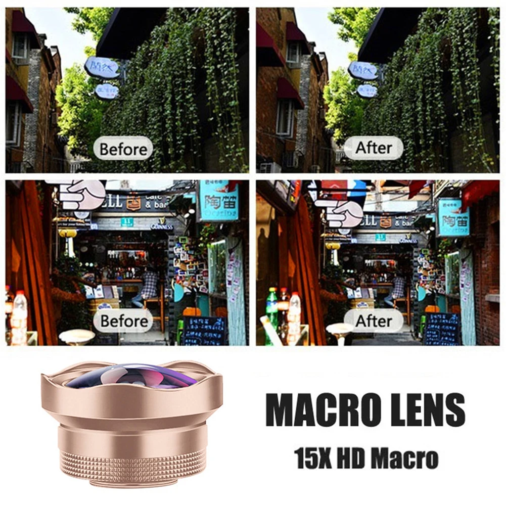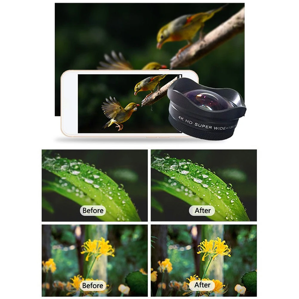 4K HD оптический мобильный телефон объектив без искажений 0.45X широкоугольный + 15X макрообъектив профессиональная камера для смартфонов iPhone Android