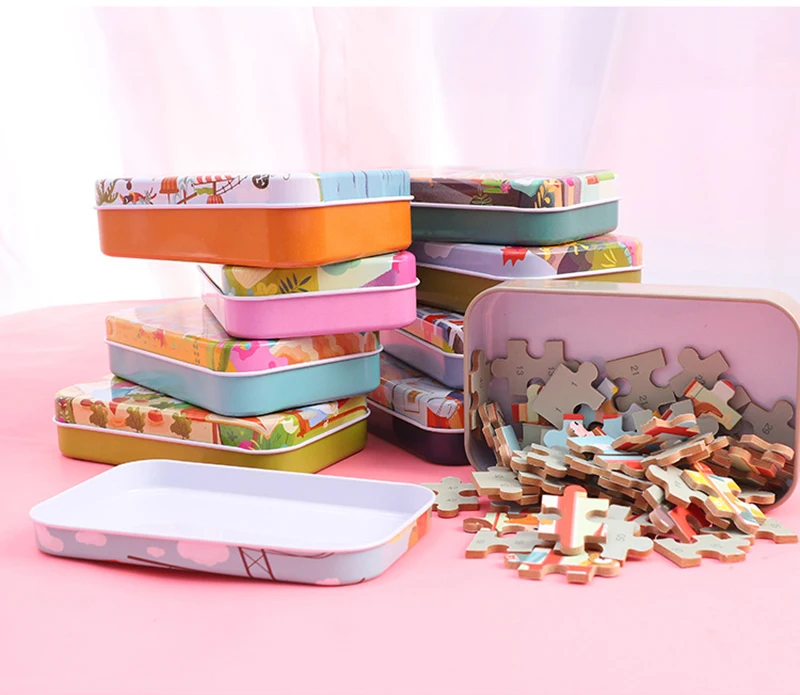 Материал: Деревянный Цвет соответствует: как на картинке Пол: унисекс Возраст: > 3 лет Размер изделия: как на картинке Характеристика: интеллектуальное развитие Лучшие подарки для игры родителей и детей Посылка включает в себя: 1 Набор игрушечных пазлов с железной коробкой