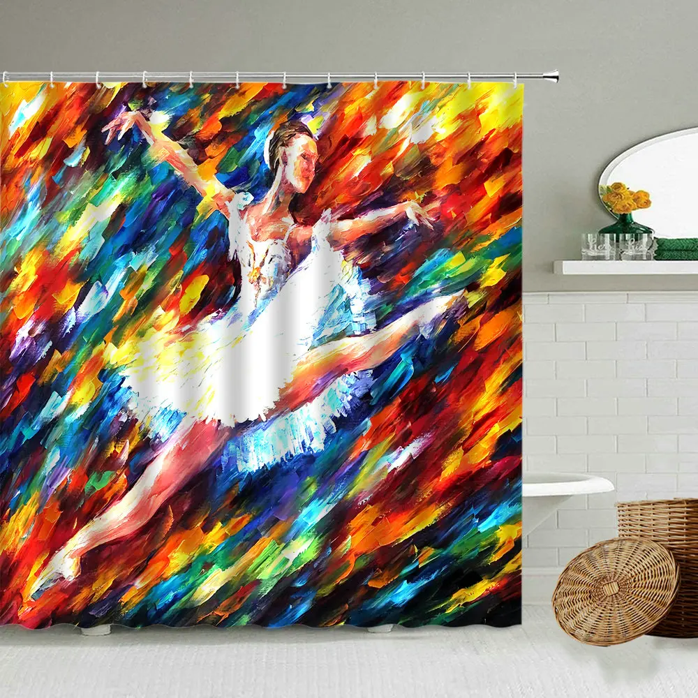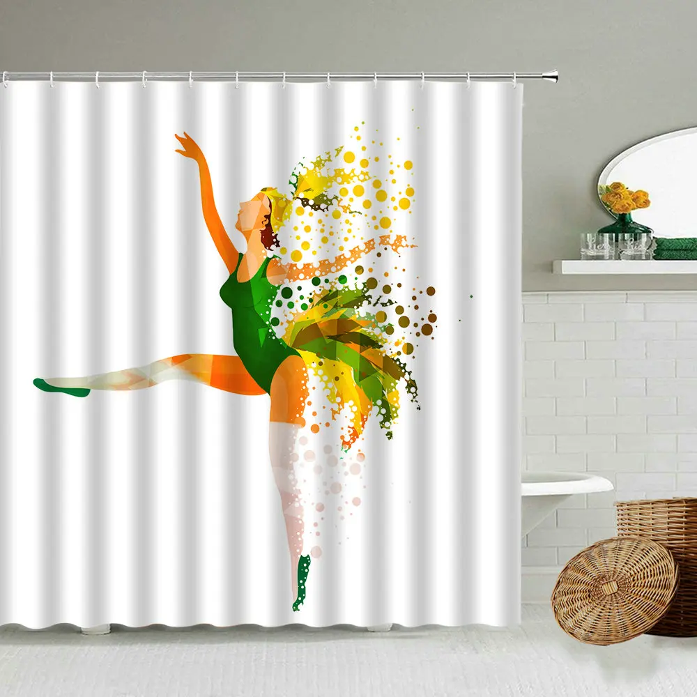 Балерины занавески для душа танцевальные экшен Лебединое озеро Девушки Красочные Искусство Ванная комната Водонепроницаемый полиэстер шторы украшение дома набор