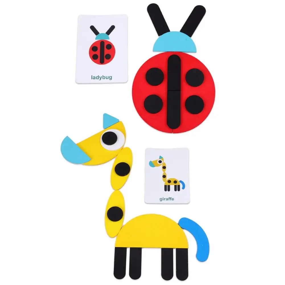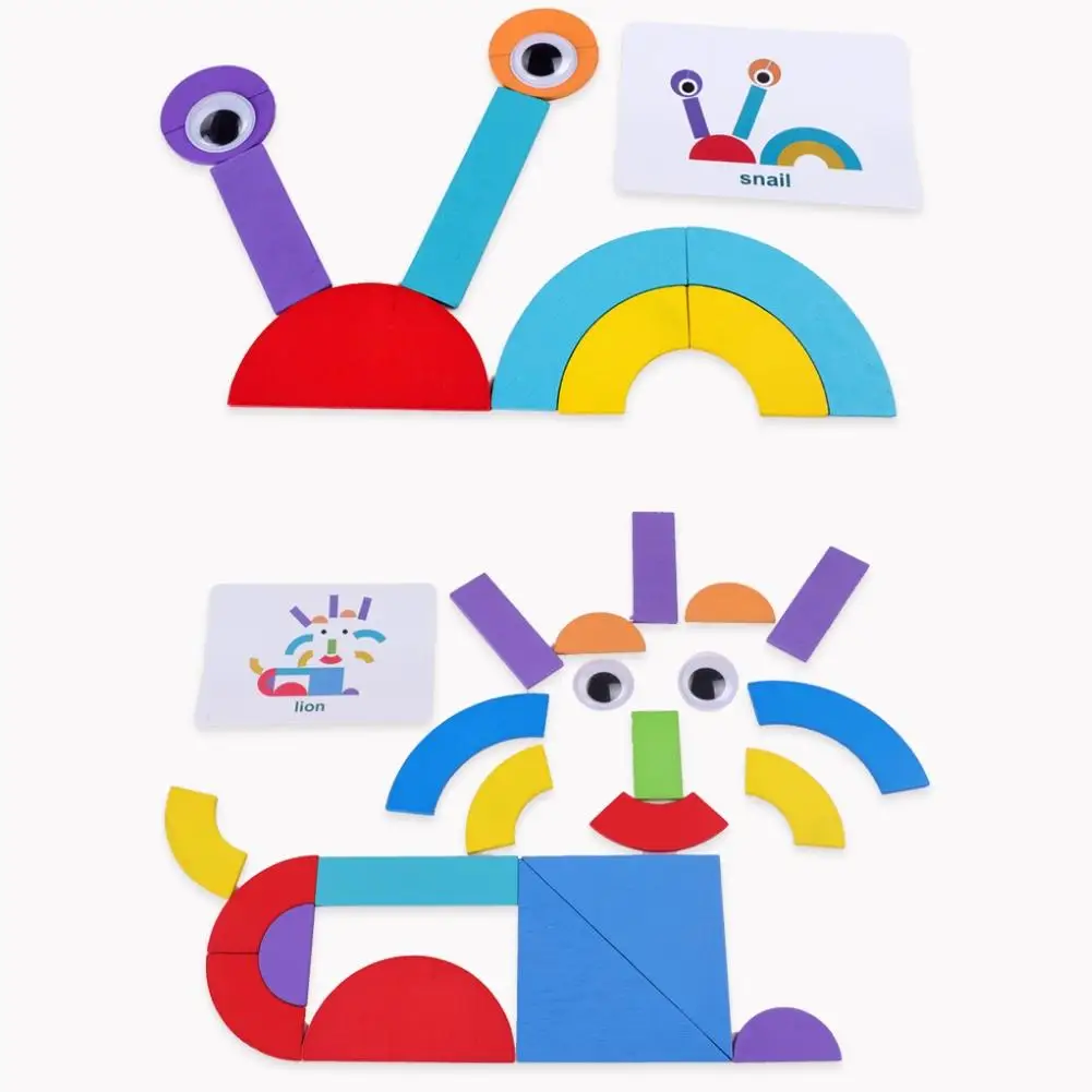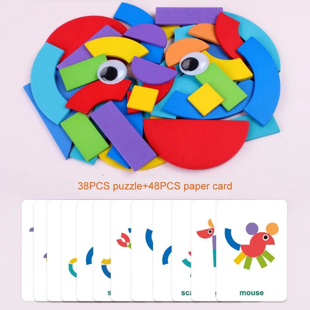 Интеллектуальная деревянная головоломка Танграм с геометрическим узором в форме животных, подарок для детей