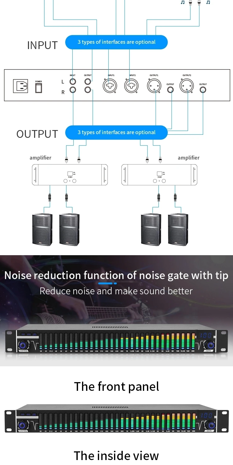 ③ Двухканальный эквалайзер обработки DSP с синхронным управлением 31 полоса