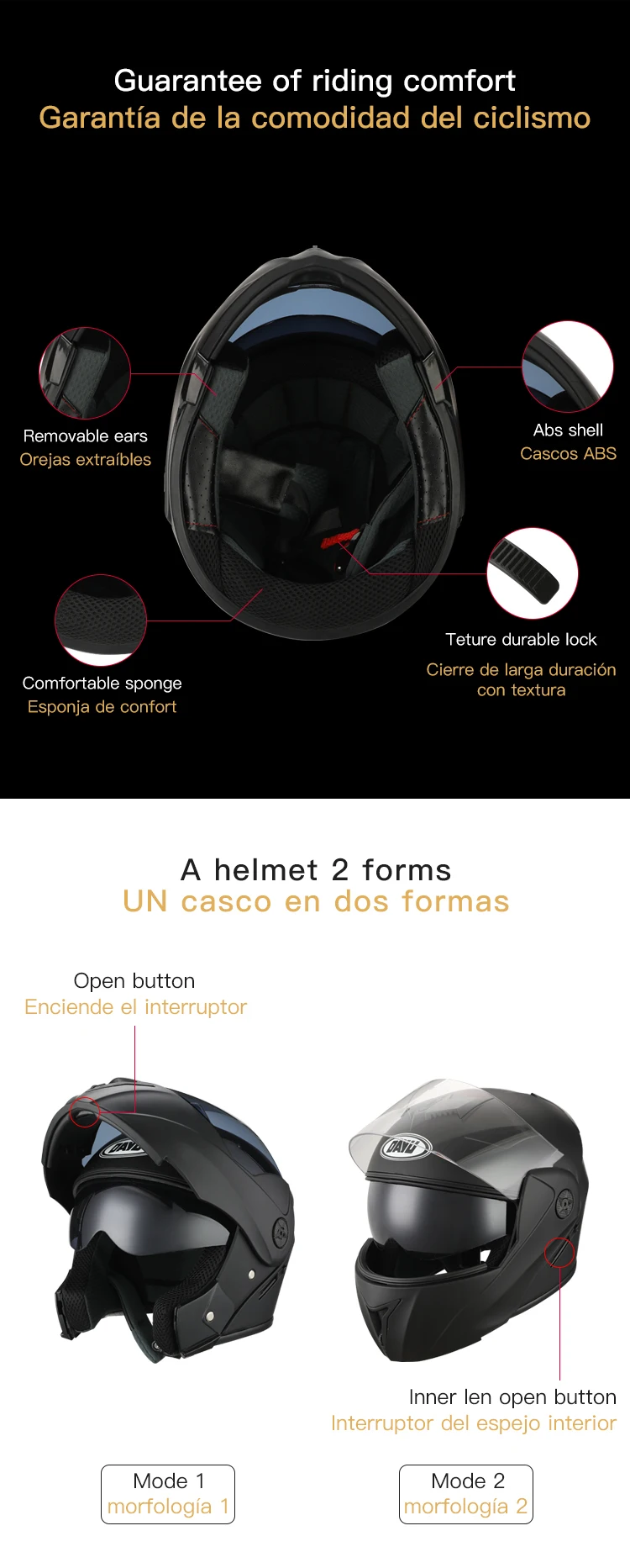 -- Материал: Carcasa de ABS, lente de PC, espuma EPS