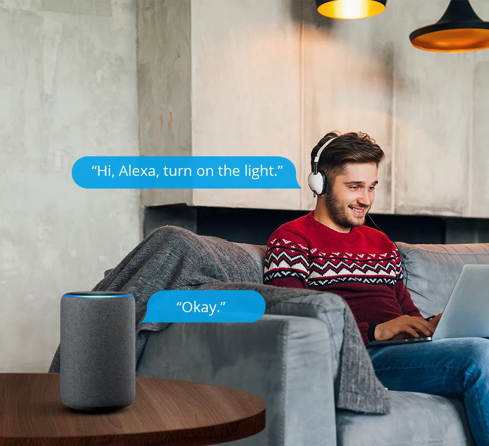 Легко совместим с Alexa, который помогает включить или выключить бытовую технику с помощью вашего голоса.