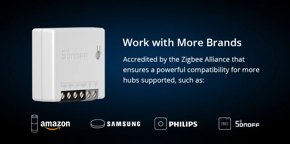 SONOFF ZBMINI-двухполосный смарт-коммутатор с поддержкой ZigBee, который совместим с различными концентраторами, включая SONOFF ZBBridge, Amazon Hub, Samsung SmartThings Hub и Philips Hue Hub. Протокол ZigBee3.0 быстро соединяет мост ZBMINI и ZigBee. ZBMINI безопаснее использовать в вашем доме, что обещано огнестойкой и огнезащитной оболочкой. Кроме того, AES-128 шифрование обеспечивает безопасность и конфиденциальность устройства данных, не беспокойтесь о конфиденциальности вашего устройства. Это может быть как маршрутизатор Zigbee, чтобы помочь передавать сигнал ZigBee для обеспечения стабильного соединения, когда несколько устройств Zigbee используются для вашего дома. Если вы заинтересованы в двухстороннем управлении, вы можете подключить однополюсный двойной переключатель для расширения внешнего соединения.