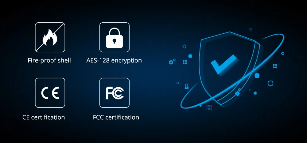 Оболочка является огнестойкой и огнезащитной оболочкой, которая улучшает пожарную безопасность, когда ZBMINI работает с вашими устройствами. Сертификация CE и FCC. Протокол ZigBee 3,0 с AES-128 шифрованием обеспечивает безопасность и нечитаемость данных вашего устройства с помощью посторонних глаз.