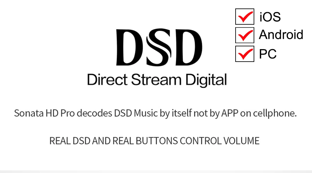 Прямой поток цифровой, Sonata HD Pro декодирует DSD музыку самостоятельно не через приложение на мобильном телефоне. Реальные DSD и реальные кнопки управления громкостью