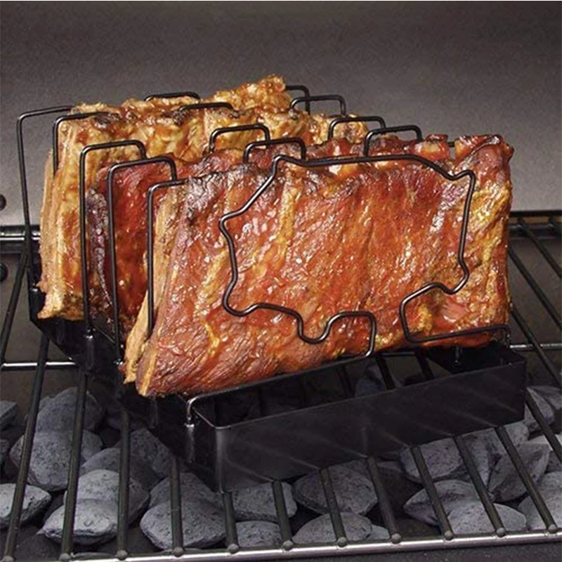 Антипригарные ребристые стойки складывается плоский держатель для гриля барбекю для хранения 5 ребрышек стойка для кухонных инструментов аксессуары для приготовления пищи