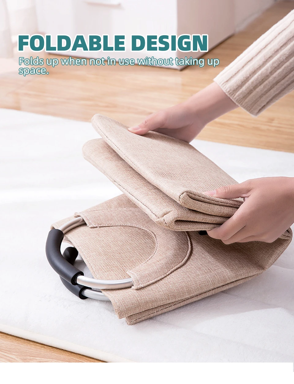 Корзина для белья, льняная Складная Ткань, корзина для белья с кольцом, алюминиевая ручка, переносная корзина для стирки, складная сумка для одежды