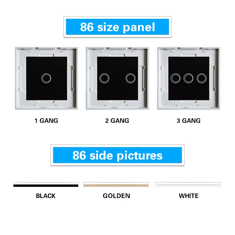 1: Это только стеклянная панель 2: Есть три цвета: белый/черный/золотистый 3: Вес: 65 г 4: Материал изделия: закаленное Хрустальное стекло 5: продукт не переключается, только аксессуары