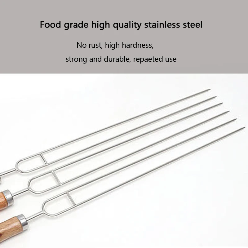 Процесс производства:Двухигольная вилка для барбекю, легко закрепить ингредиенты, большой размер, можно скребать больше ингредиентов, и барбекю более удобно,