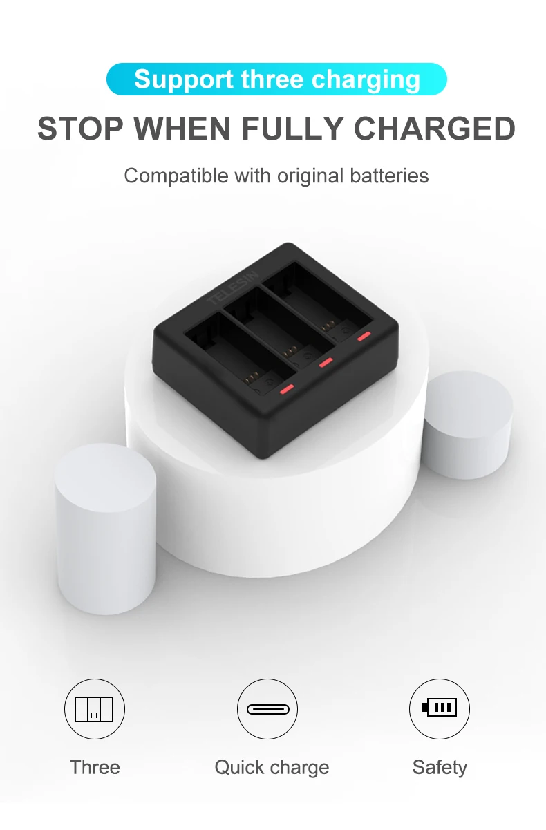 6. Три батареи во время зарядки и хранения, вмещает до двух tf-карт и трех батарей.