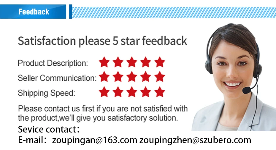 1. Если вы хотите разместить большой заказ для оптовой продажи, пожалуйста, свяжитесь с нами. 2. Если вам нужно заказать (≥ 1500 долларов США), пожалуйста, сначала сообщите нам. Мы можем предложить вам дополнительную скидку. 3. Если у вас есть какие-либо вопросы, пожалуйста, свяжитесь с нашей службой поддержки клиентов по электронной почте: zoupingzhen@szubero.com