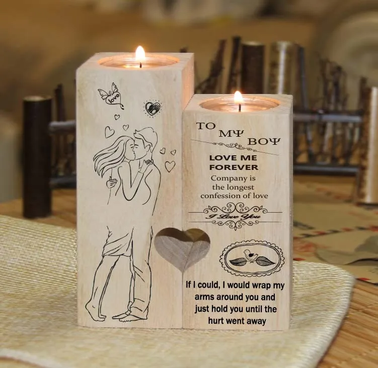 Деревянный подсвечник подарок для пары дочки сердце-в виде корабля деревянный