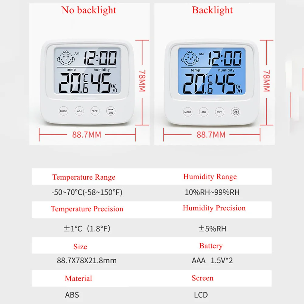 1. Наш цифровой термометр имеет большие вентиляционные отверстия с обеих сторон для обеспечения высокой точности показаний с быстрым, в режиме реального времени. С широким диапазоном температур от-9,9 ° C-50 ° C и широкий диапазон влажности 10% RH - 99% относительной влажности.