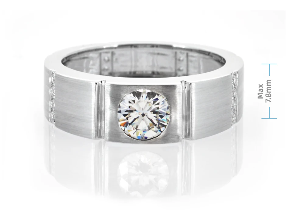 Самый высокий размер в середине кольца составляет 7,8 мм, постепенно уменьшаясь в обе стороны, что делает его удобным в носке.