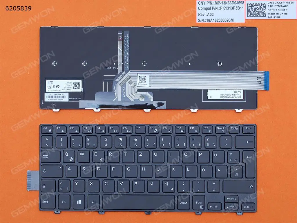 Немецкая клавиатура QWERTZ для ноутбука Dell Inspiron 14 5442 5445 5447 5448 5451 5455 5458 7447 5452 5457 5459 5443 с подсветкой