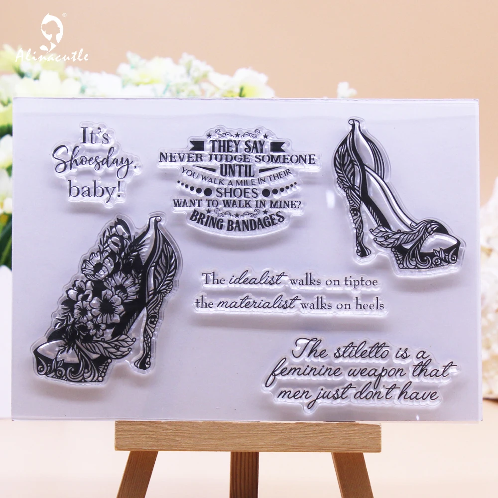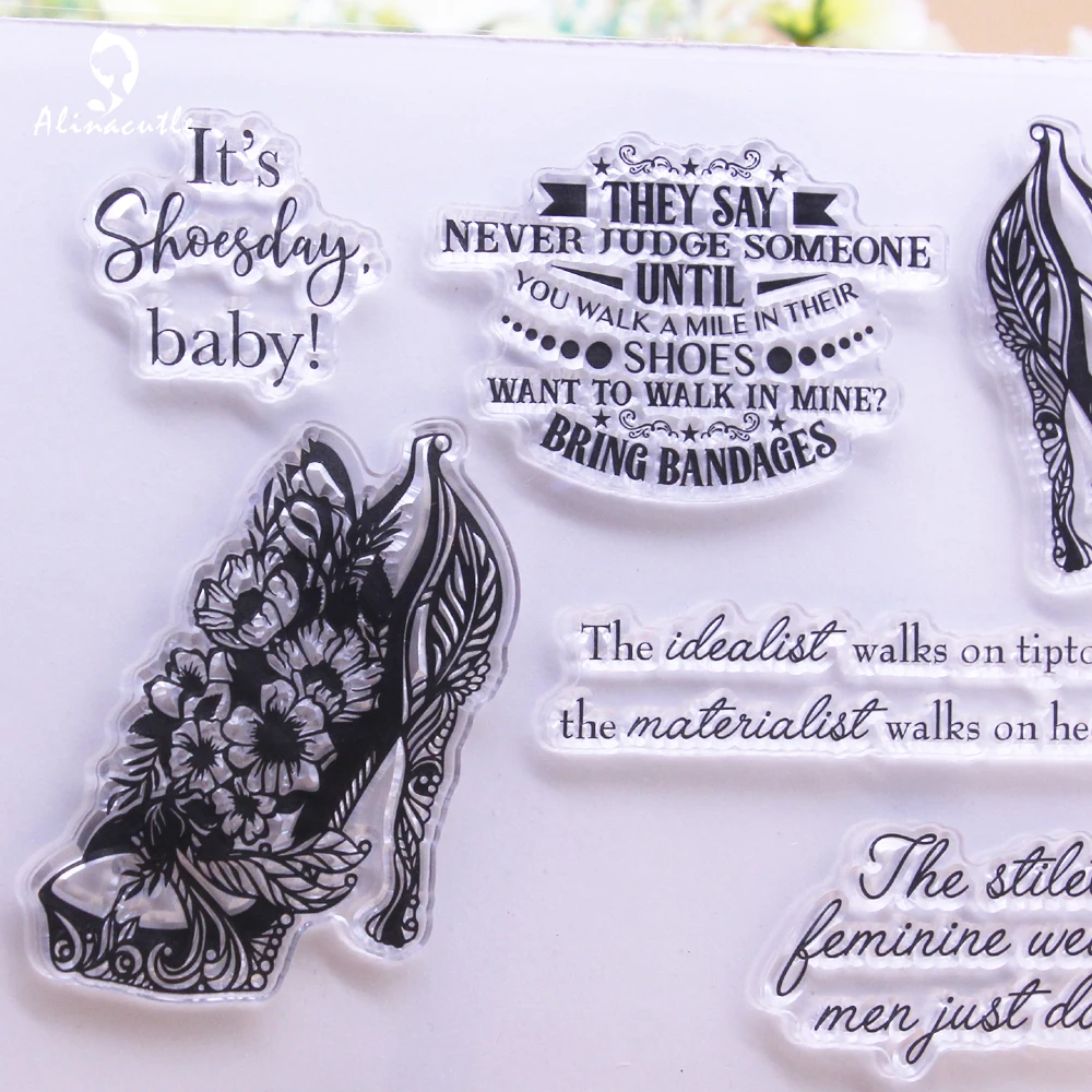 Прозрачные штампы на день обуви, альбом для вырезок, альбом, бумага, ремесло, резиновый валик, прозрачный силиконовый штамп, AlinaCraft
